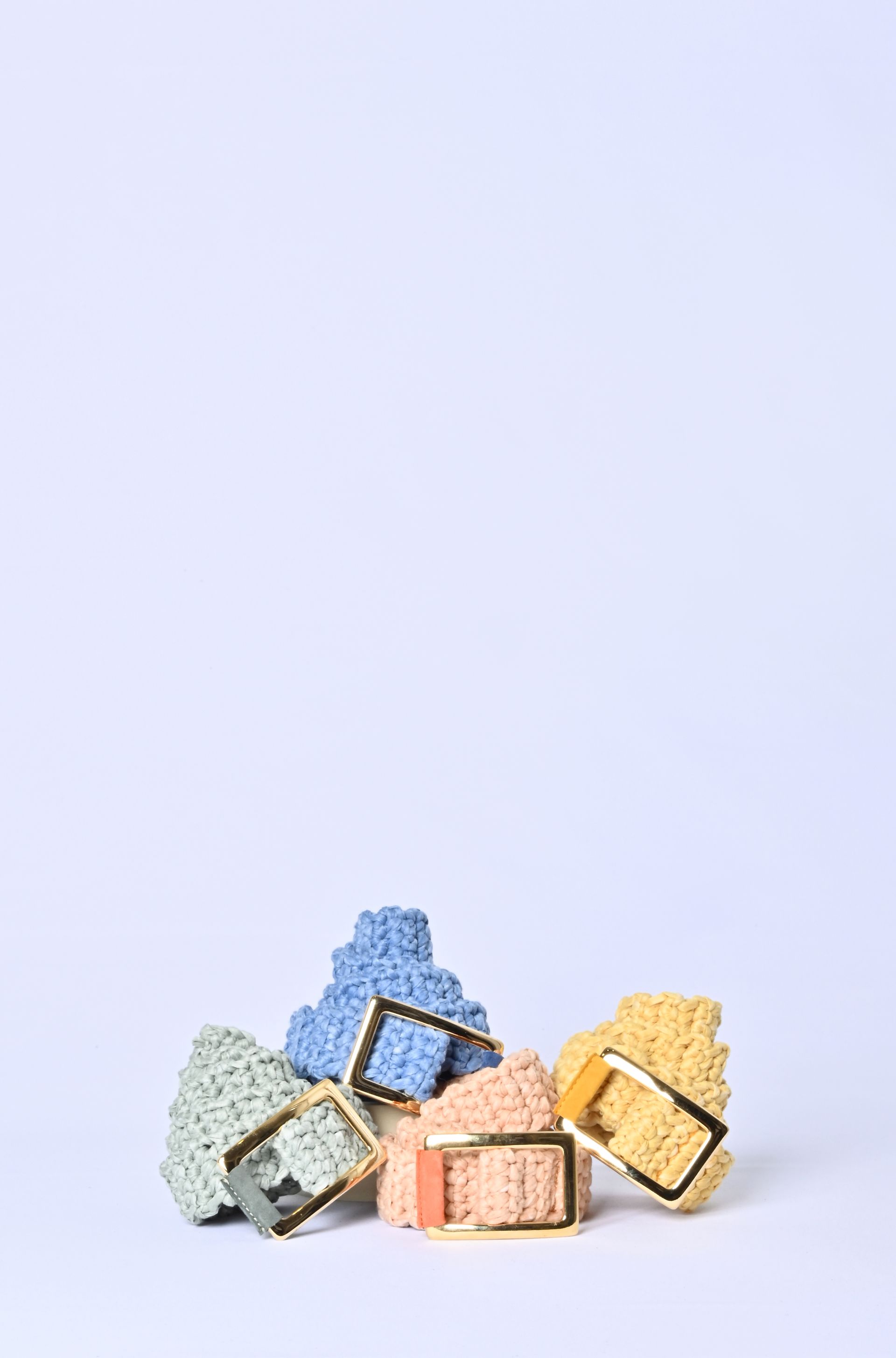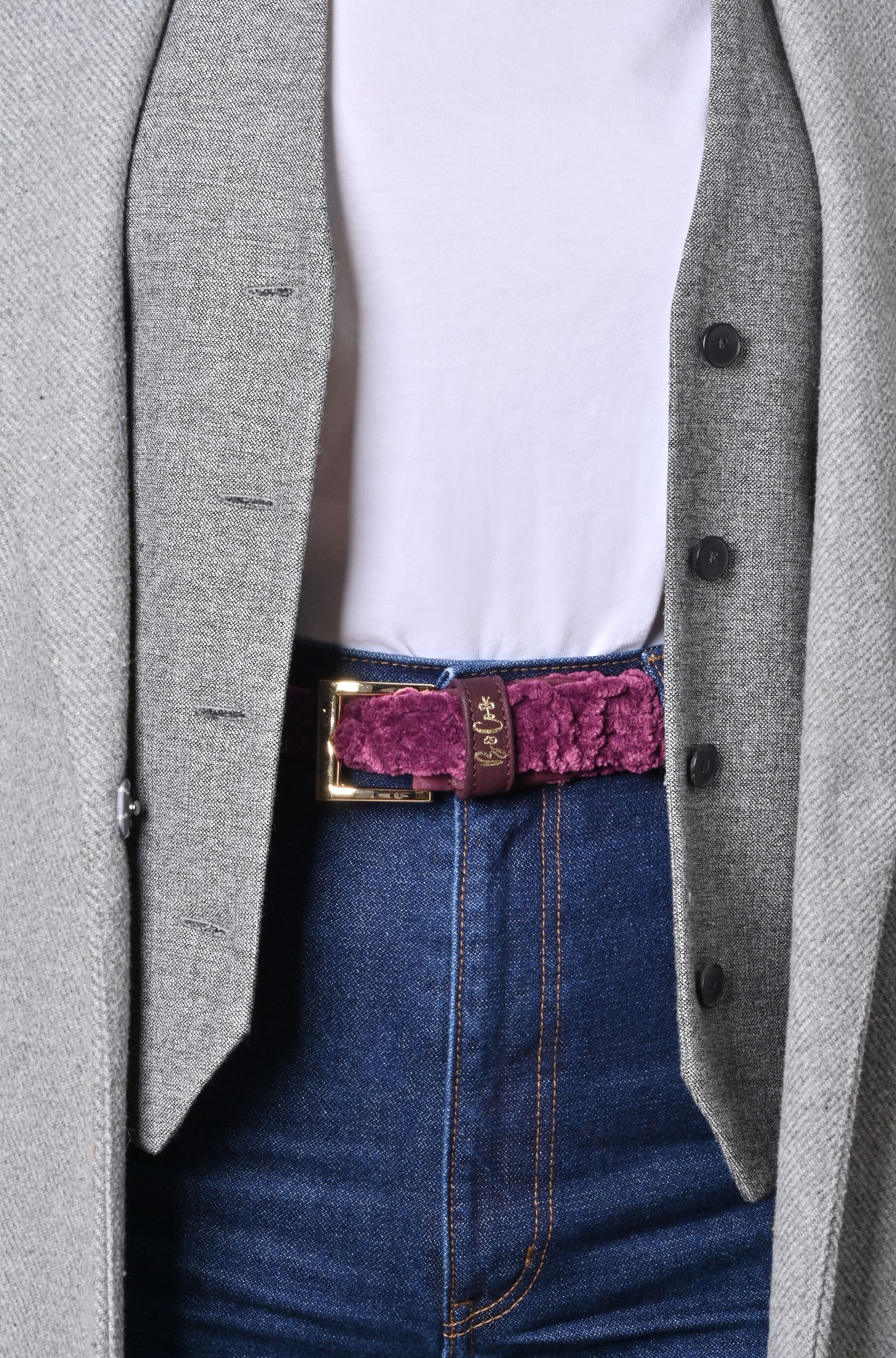 Composizione: Corda e dettaglio in camoscio, fibbia color oro