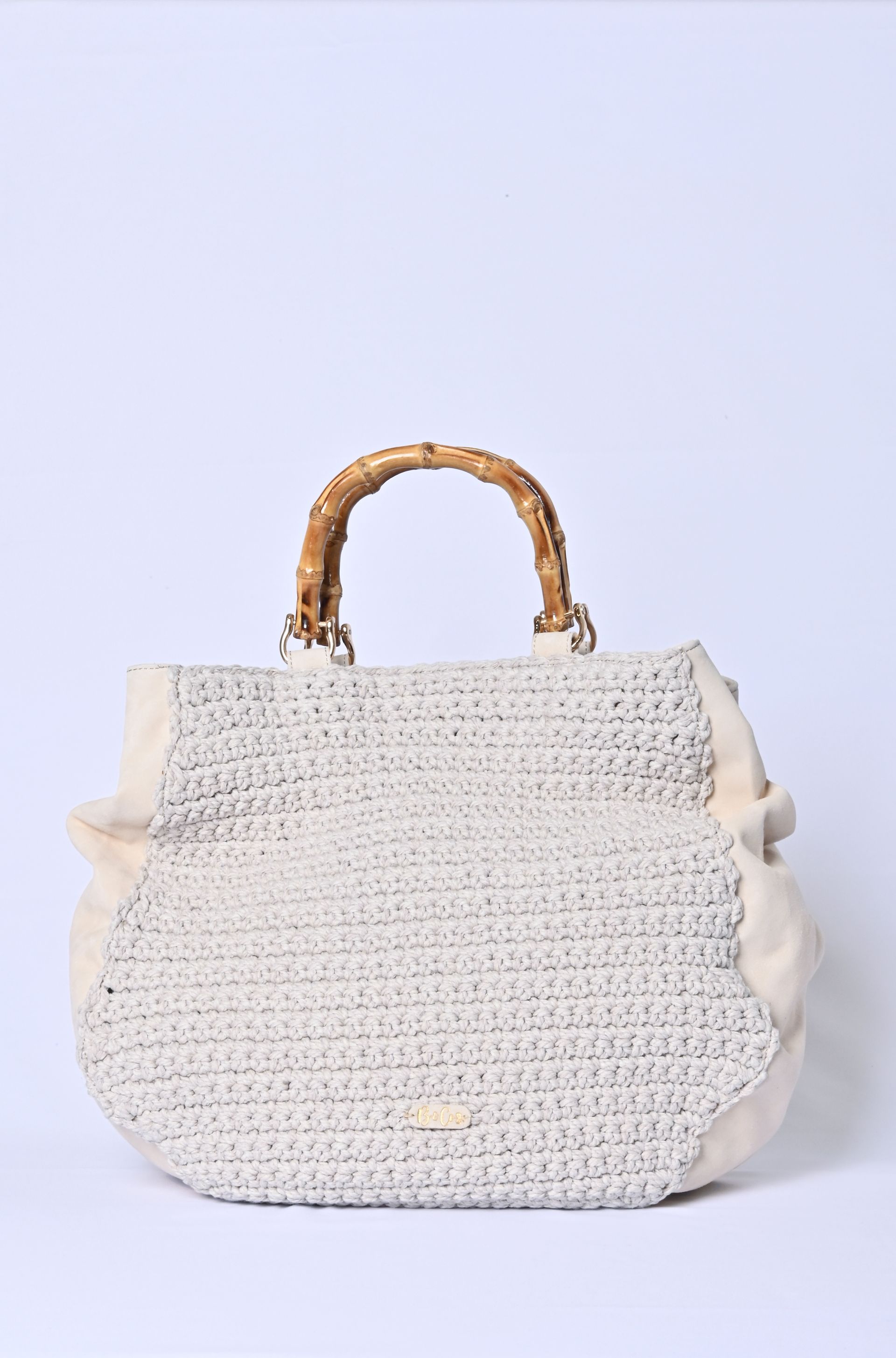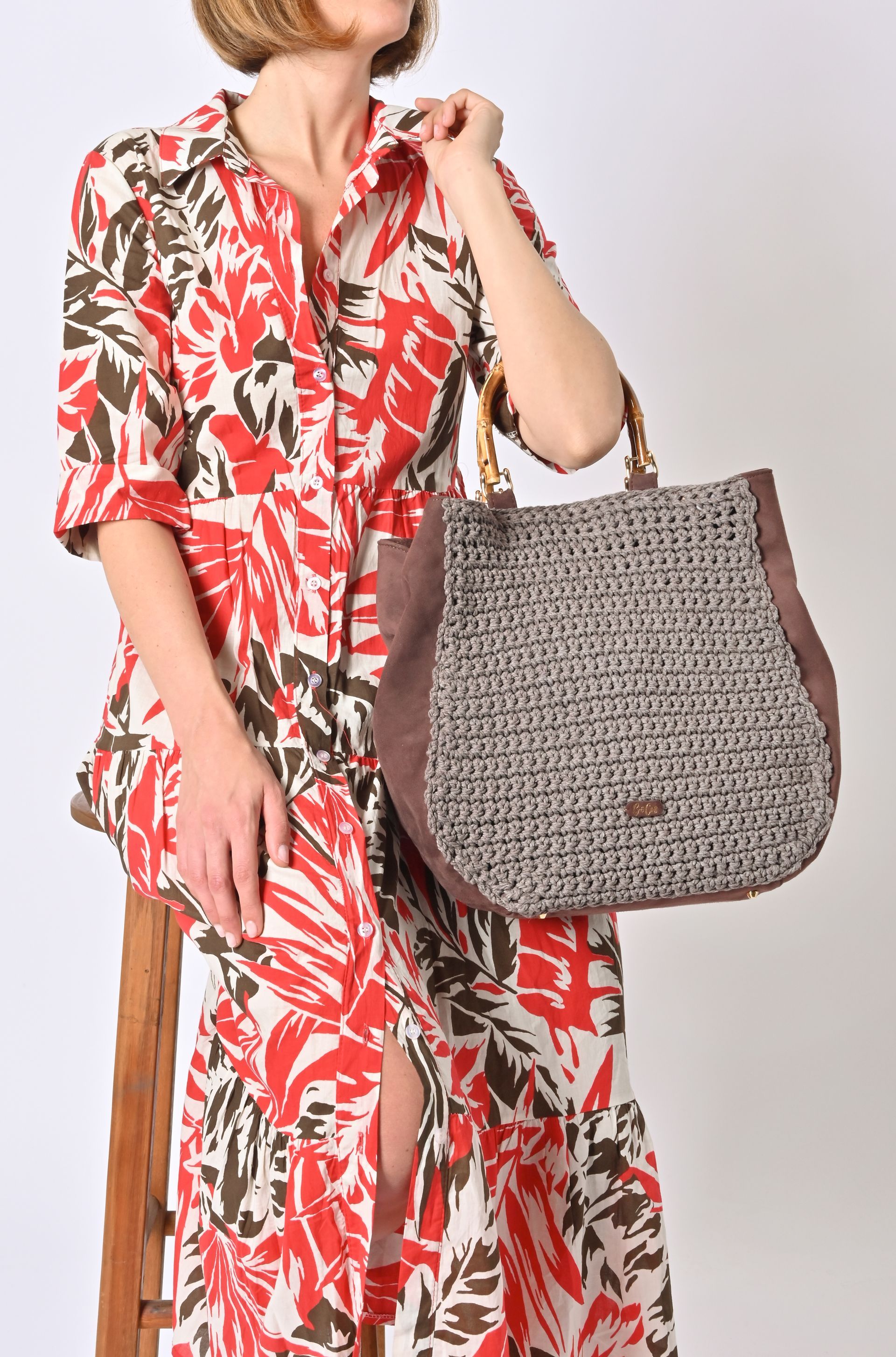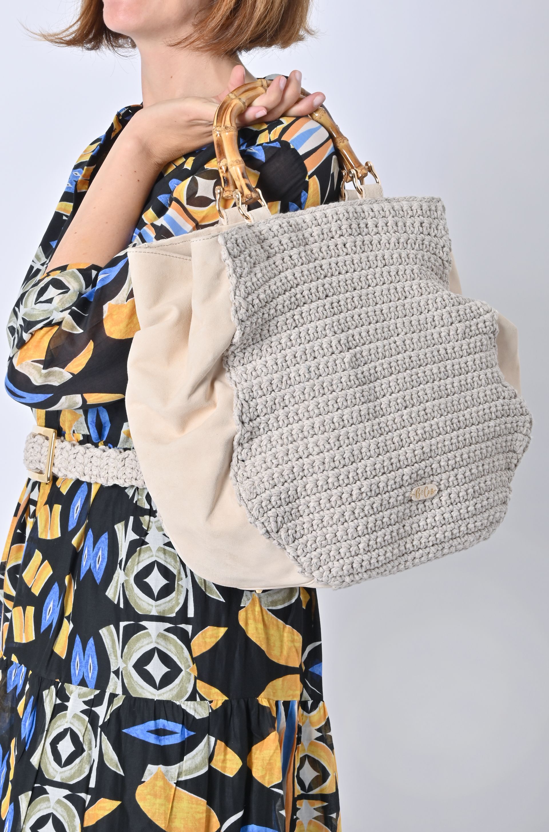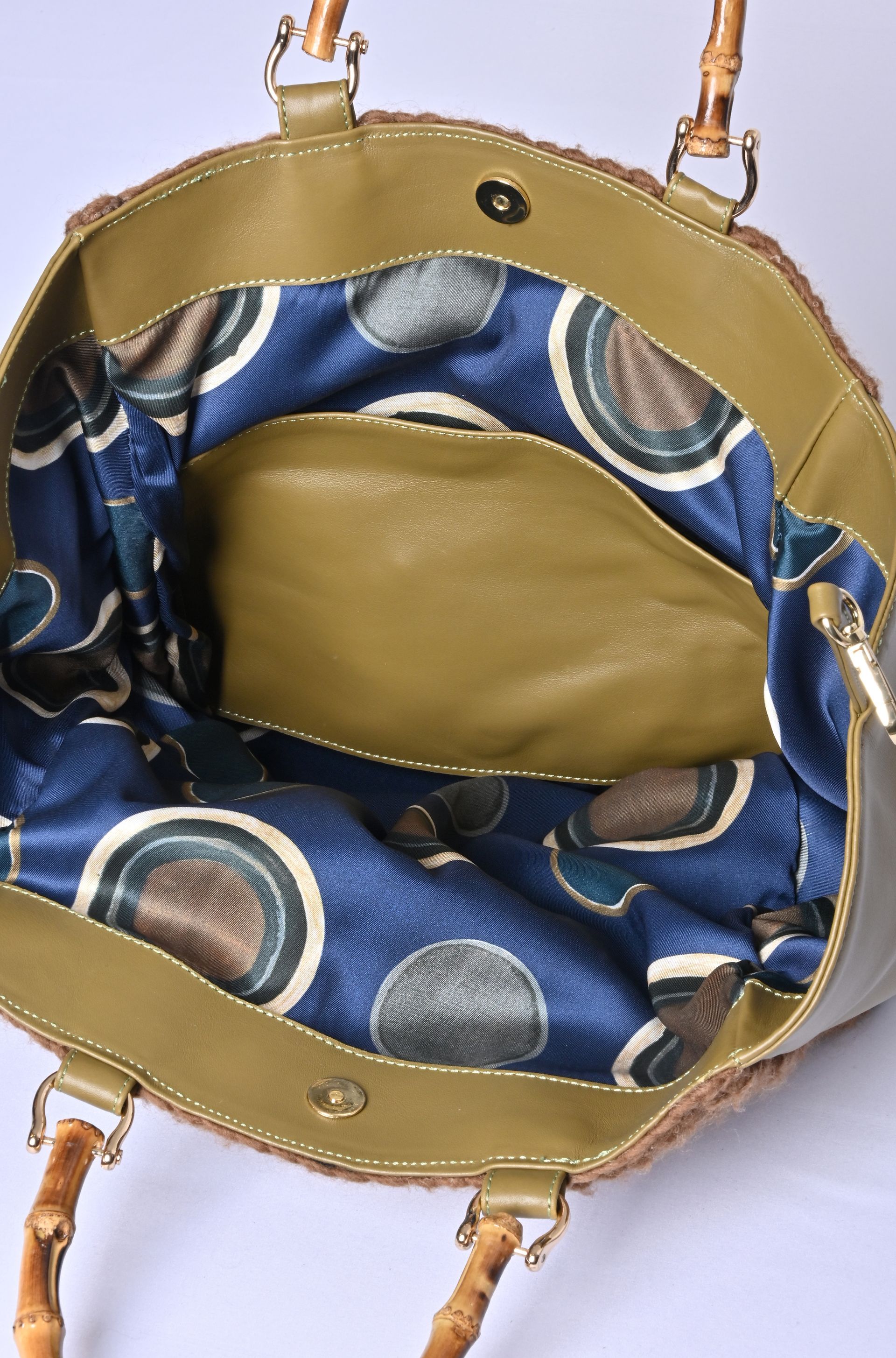 Composizione: Corda e inserti in camoscio, manici in bamboo, interno in raso di seta - fantasia