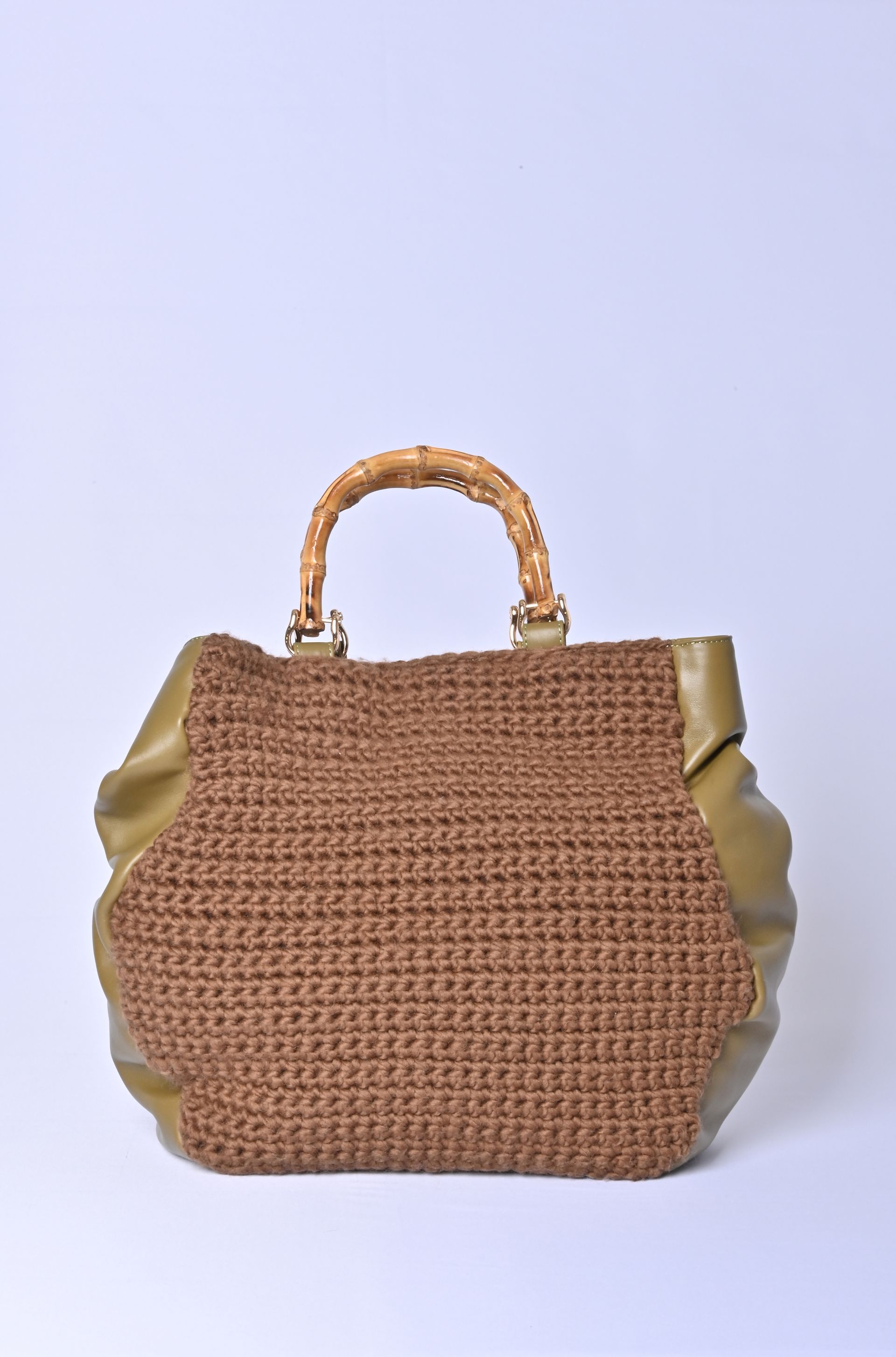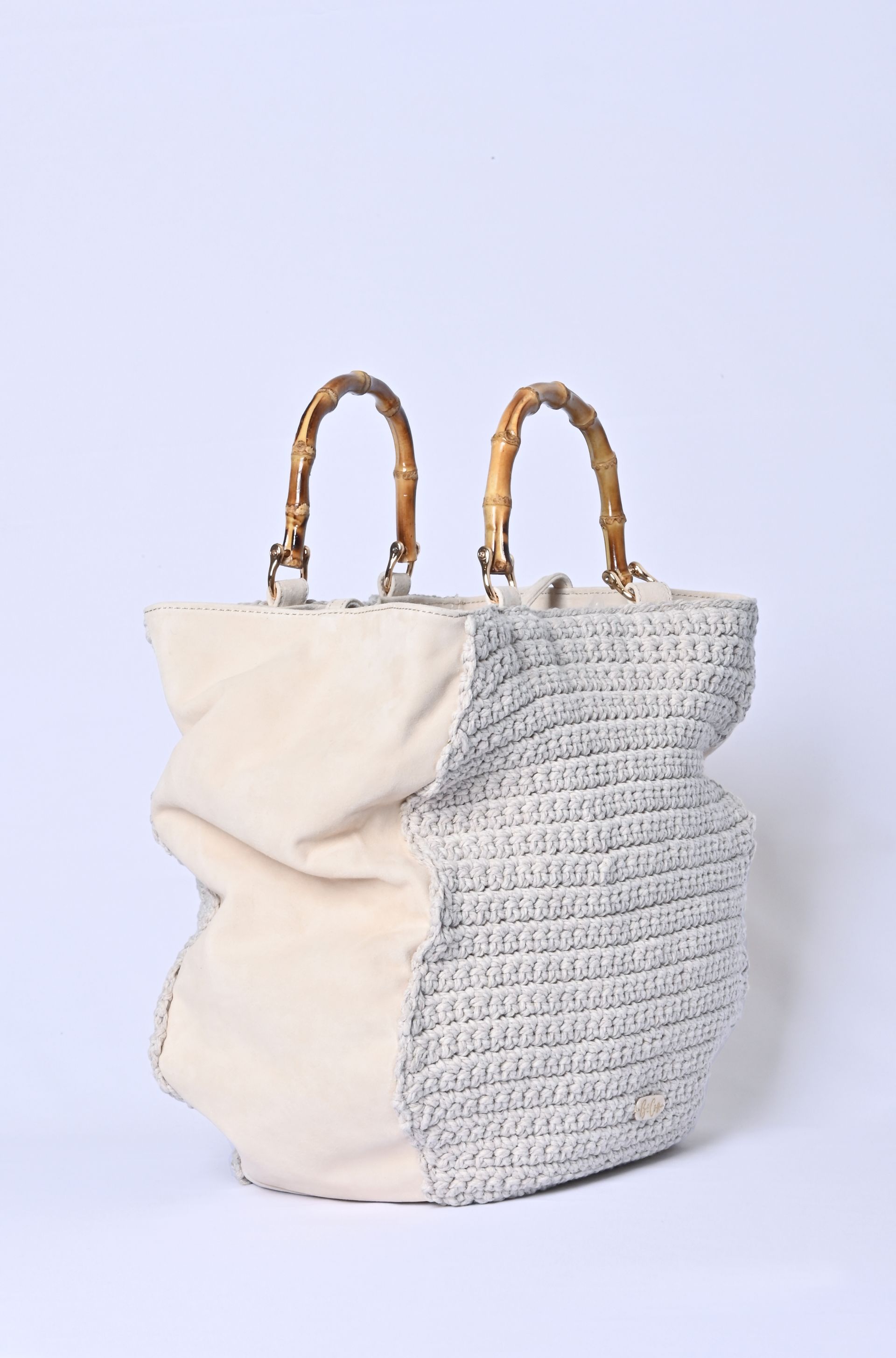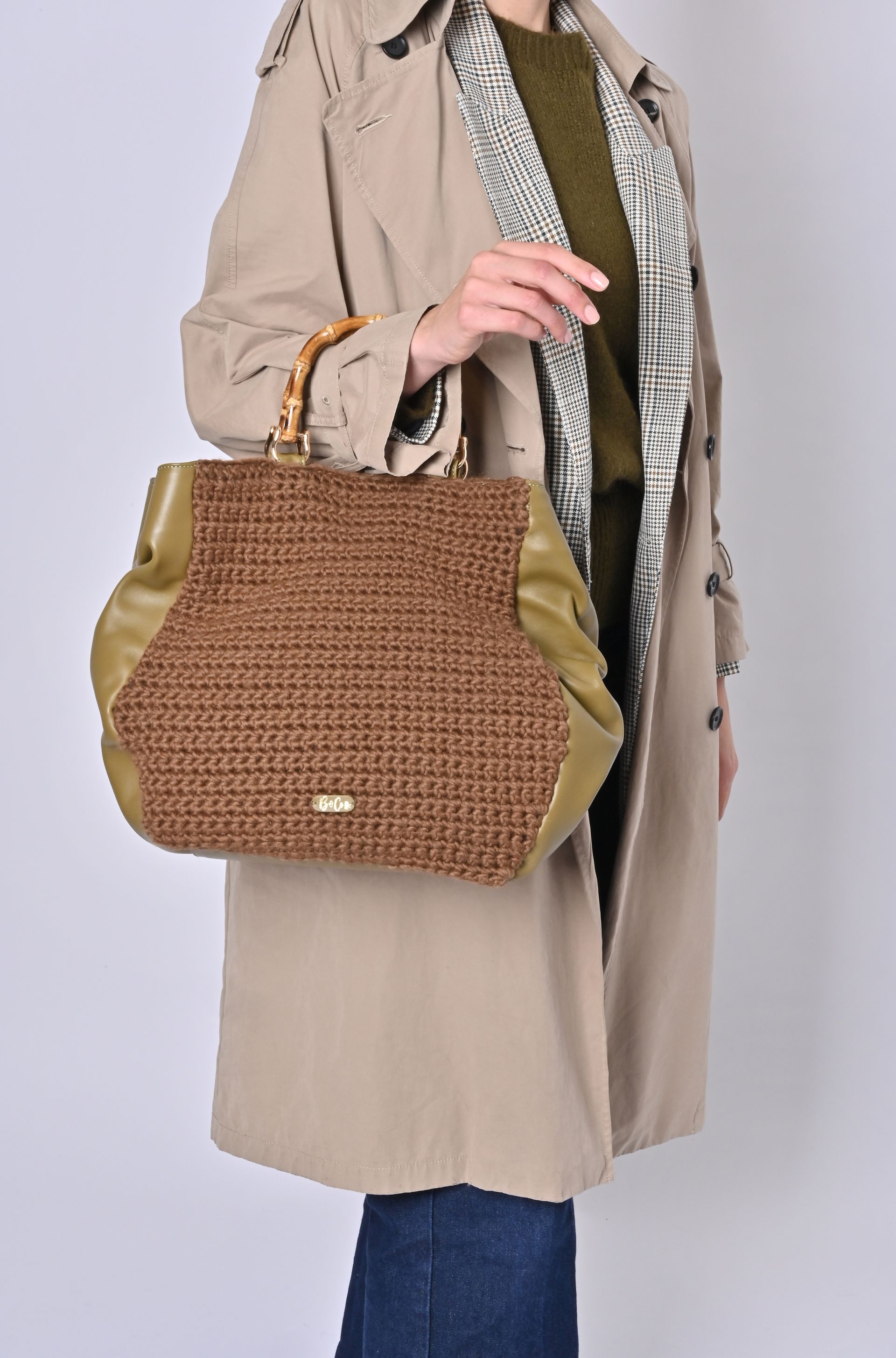 Composizione: Corda e inserti in camoscio, manici in bamboo, interno in raso di seta - fantasia
