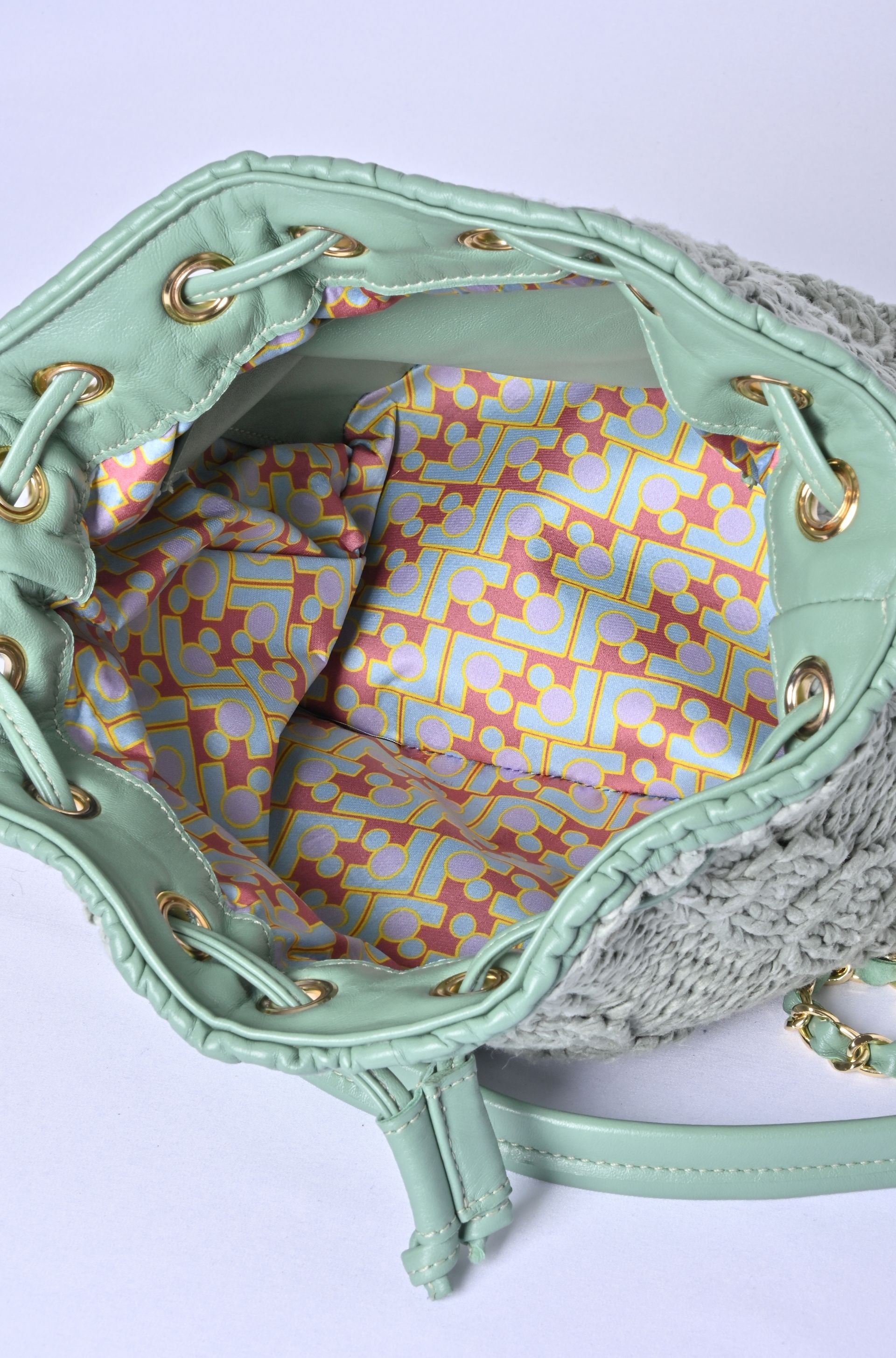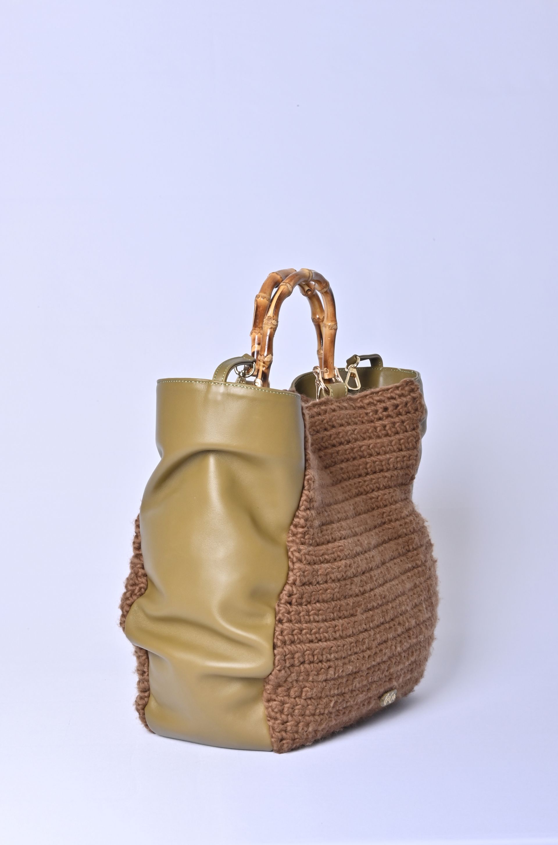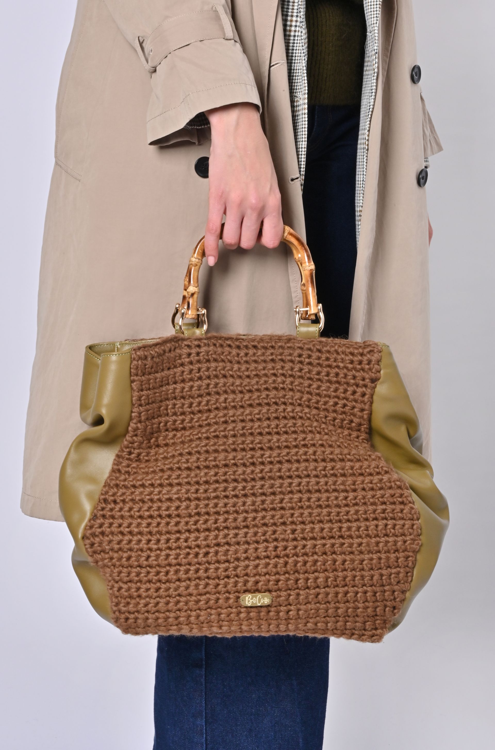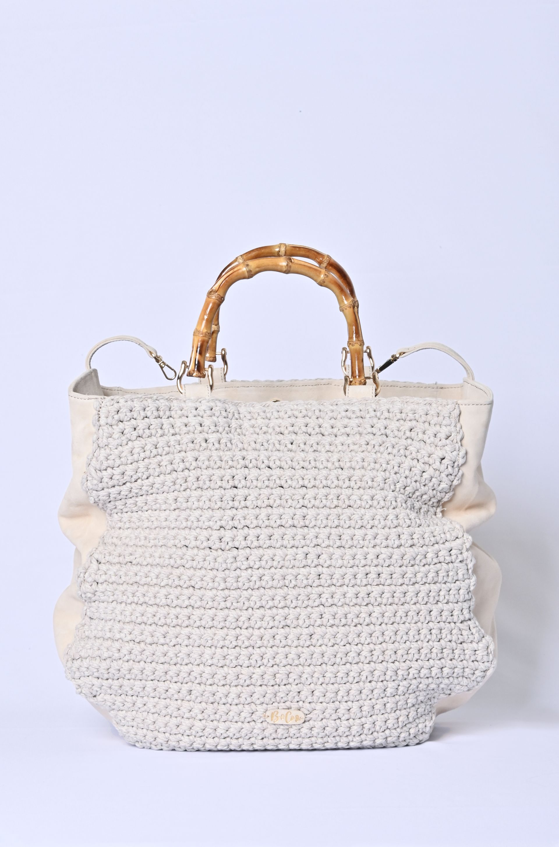 Composizione: Corda e inserti in camoscio, manici in bamboo, interno in raso di seta - fantasia