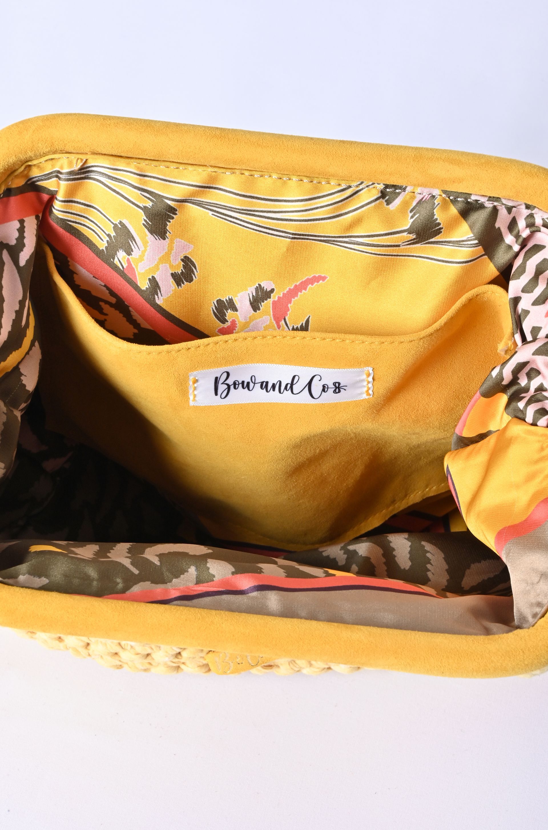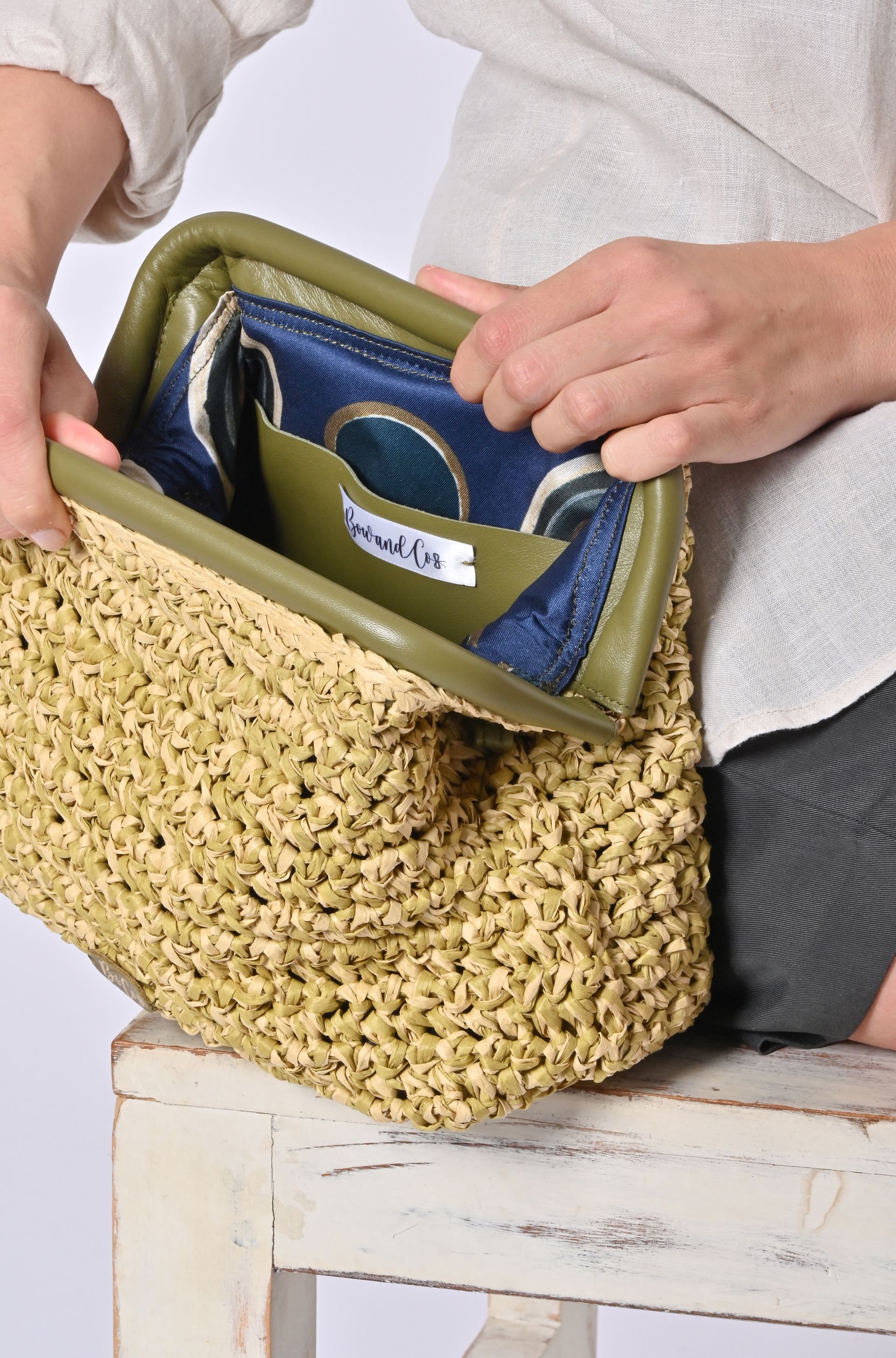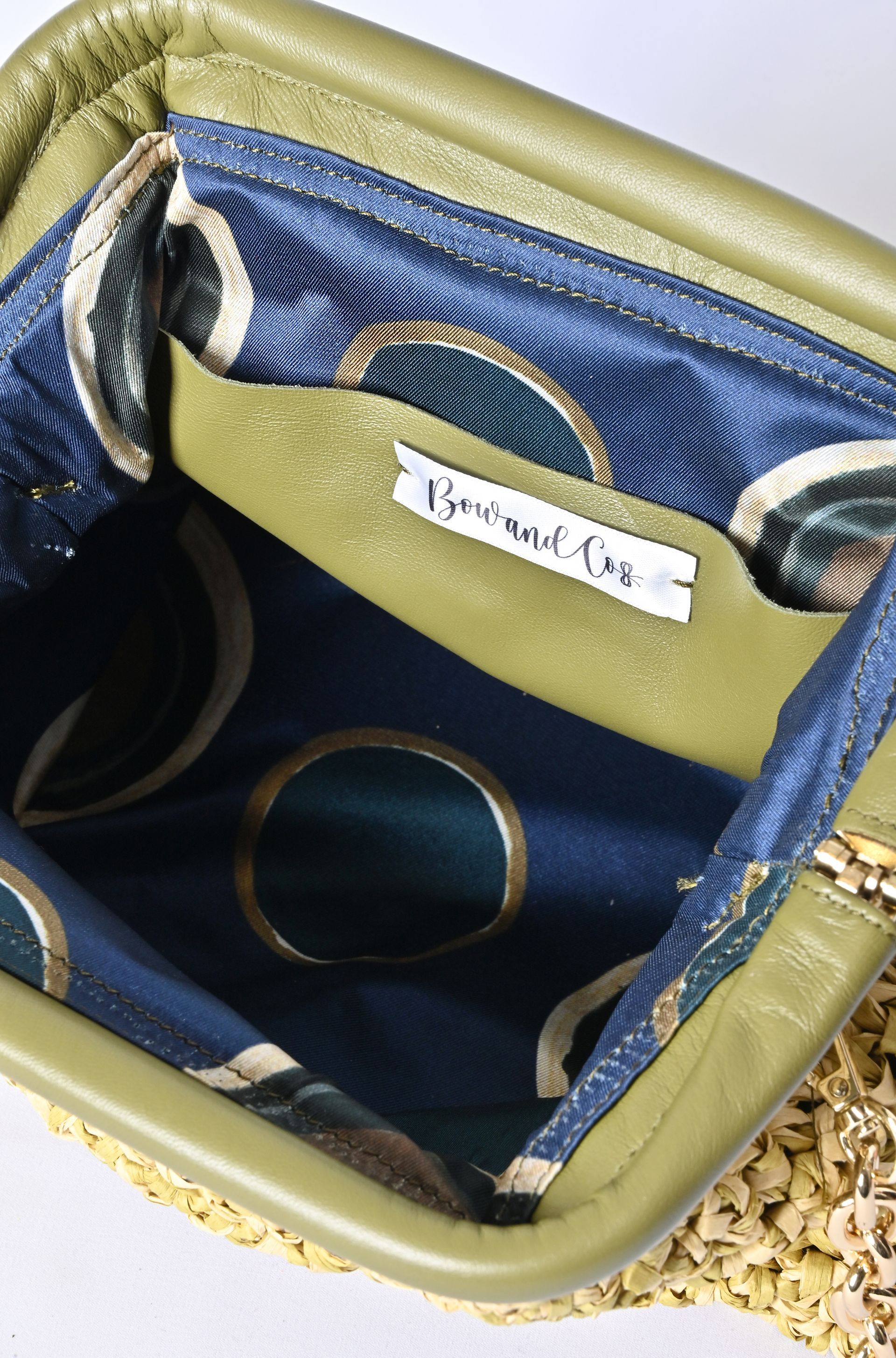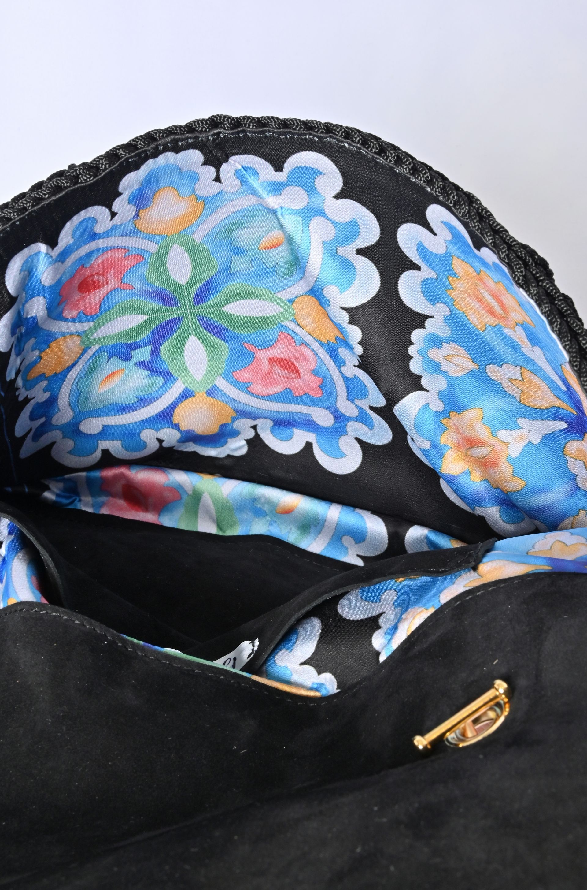 Composizione: Rafia e inserti in pelle, interno in raso di seta - fantasia