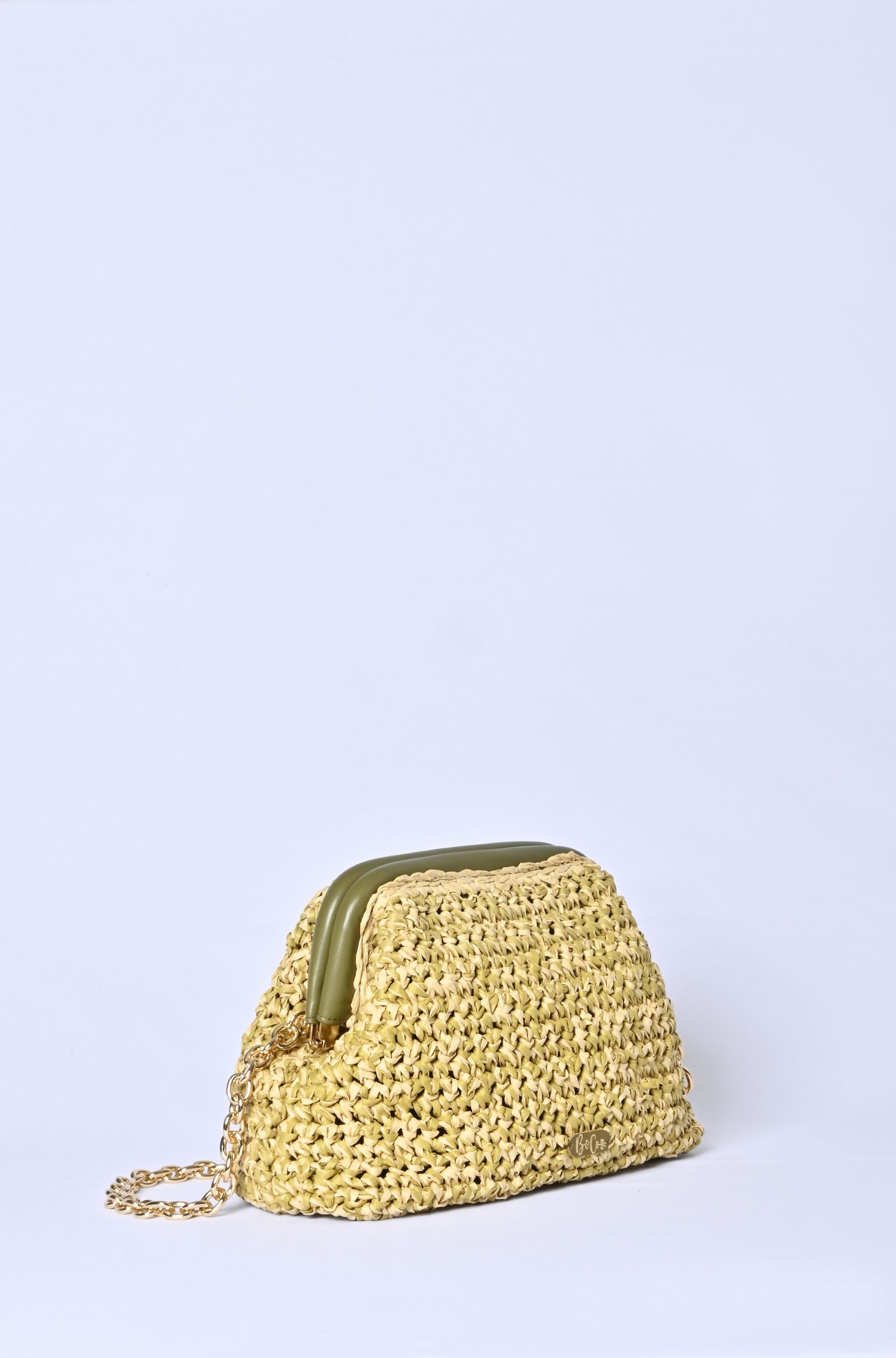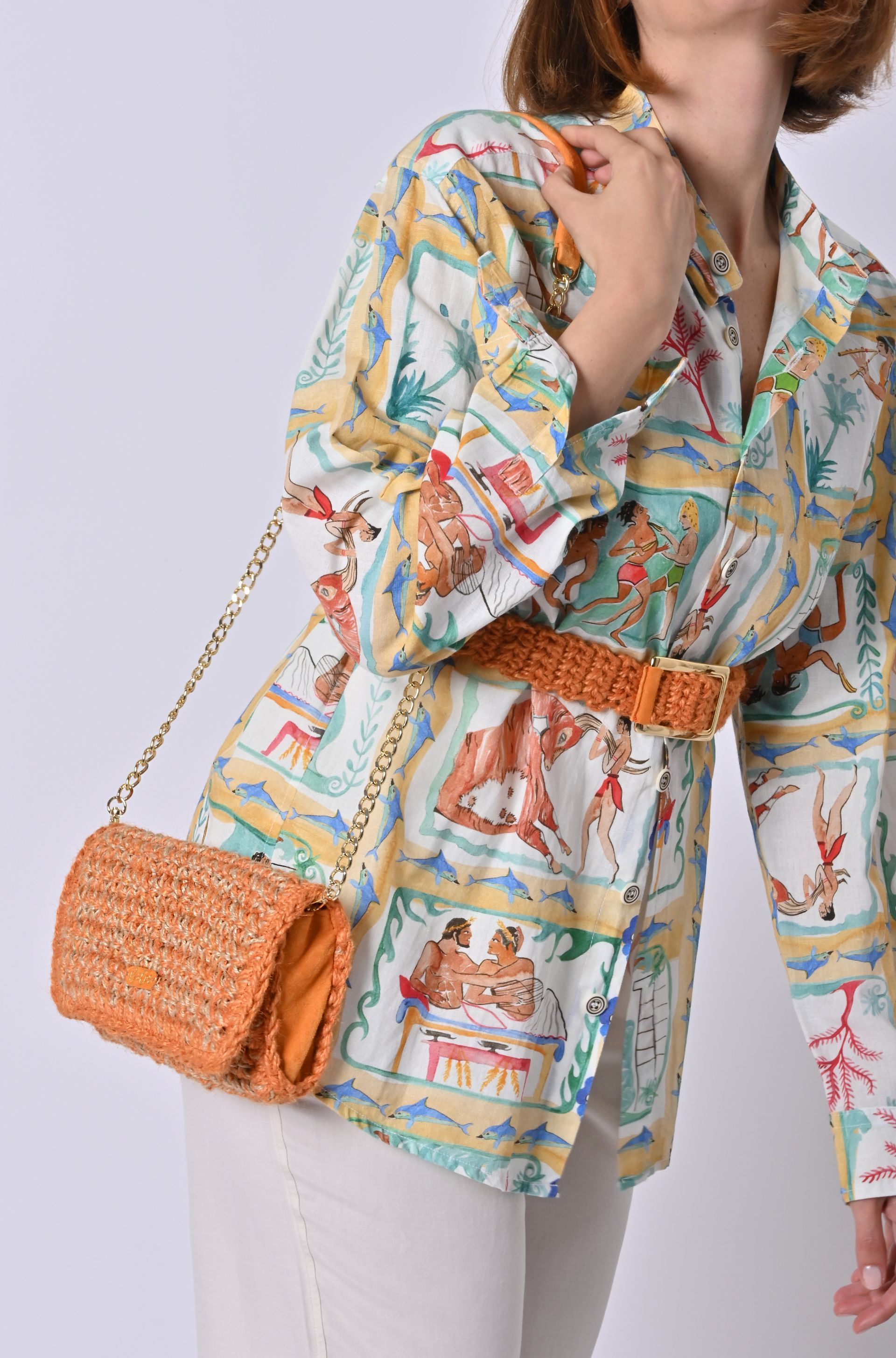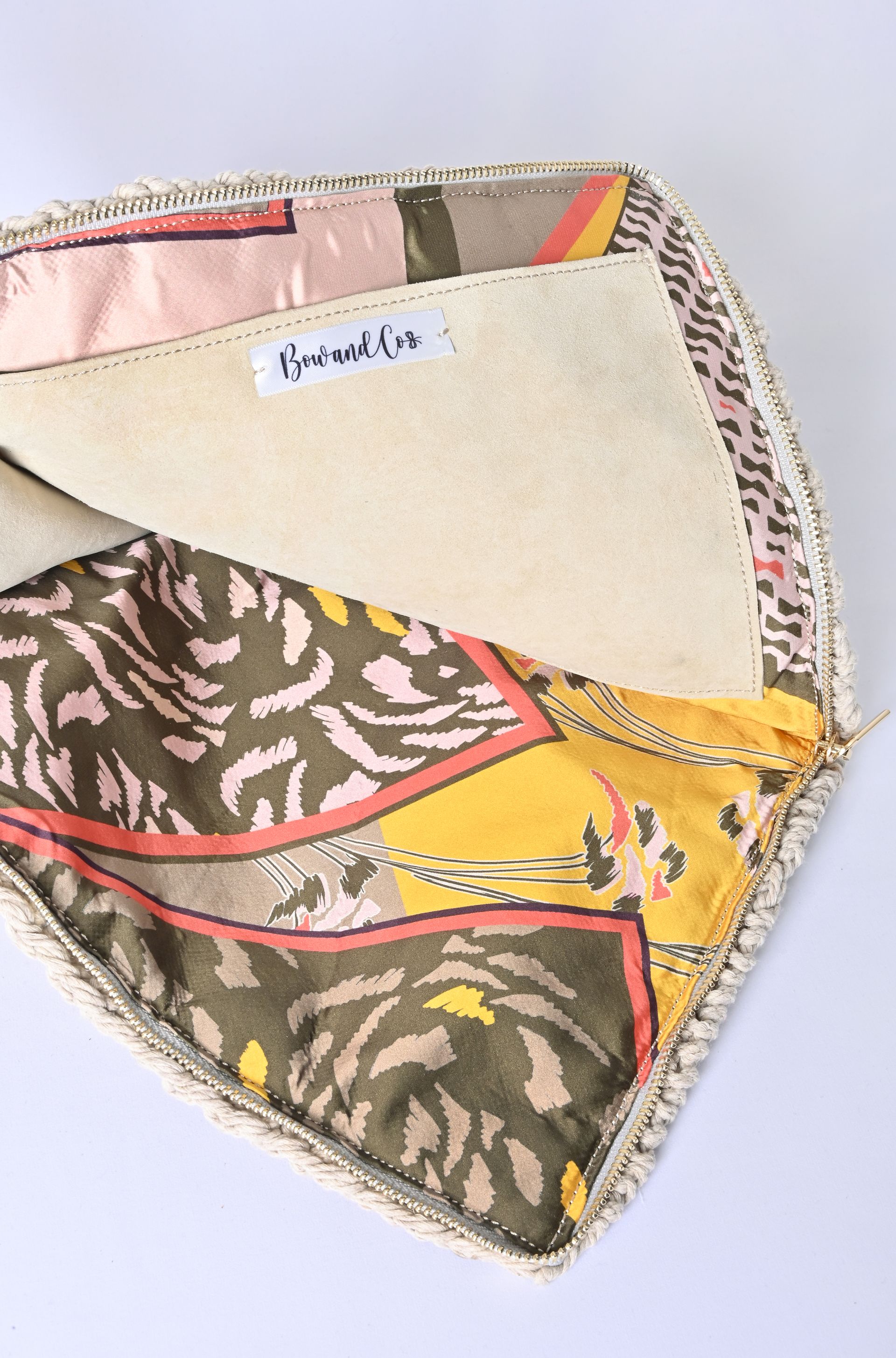 Composizione: Rafia e inserti in pelle, interno in raso di seta - fantasia