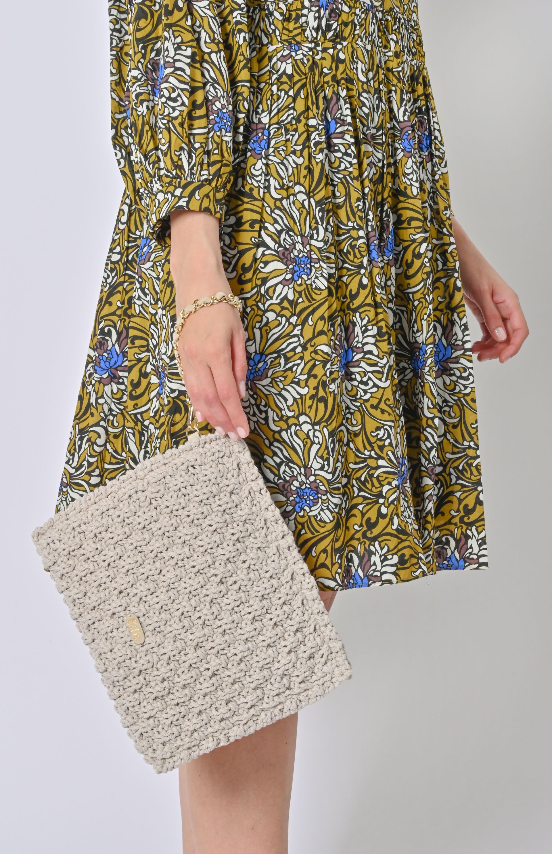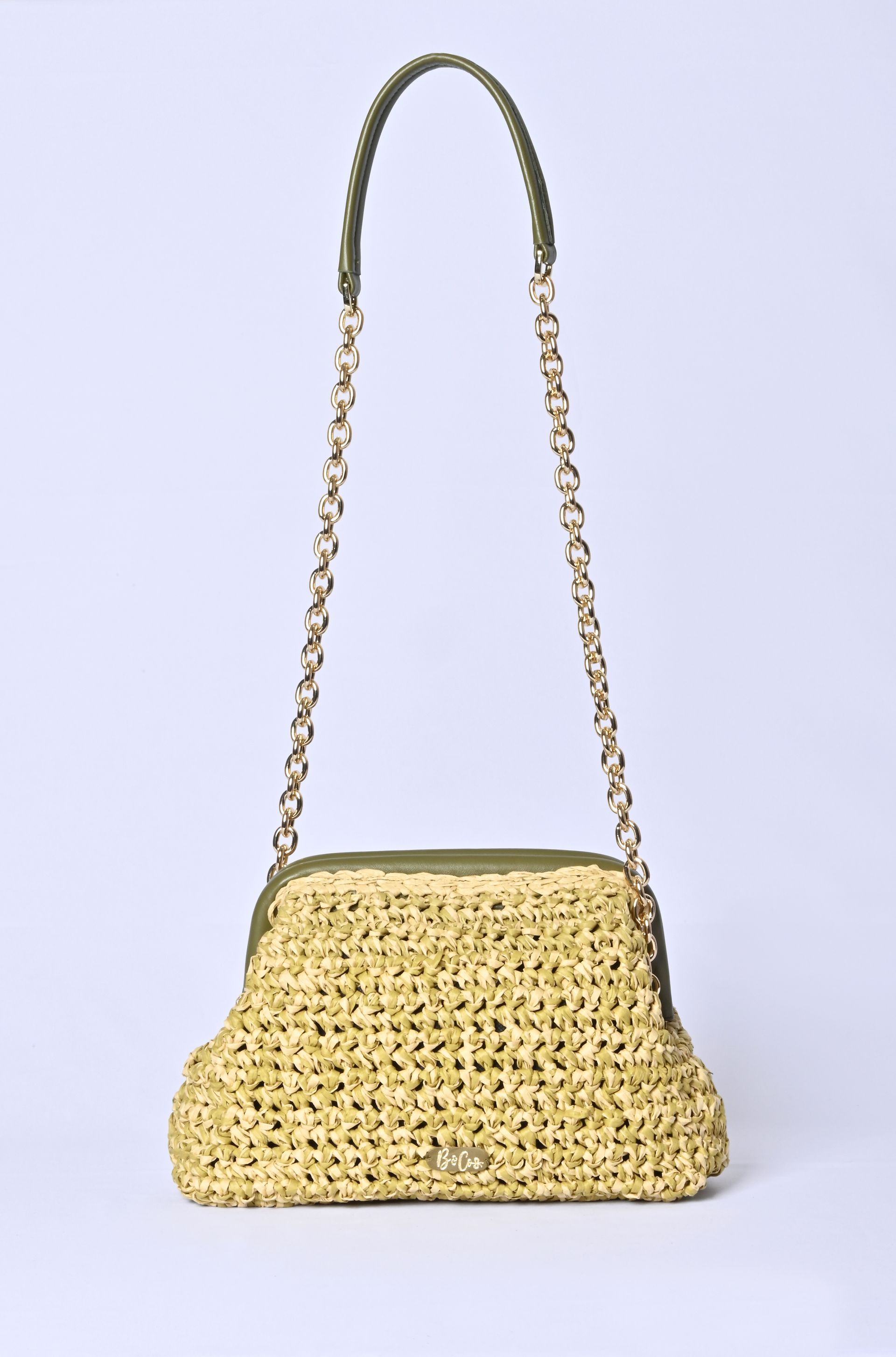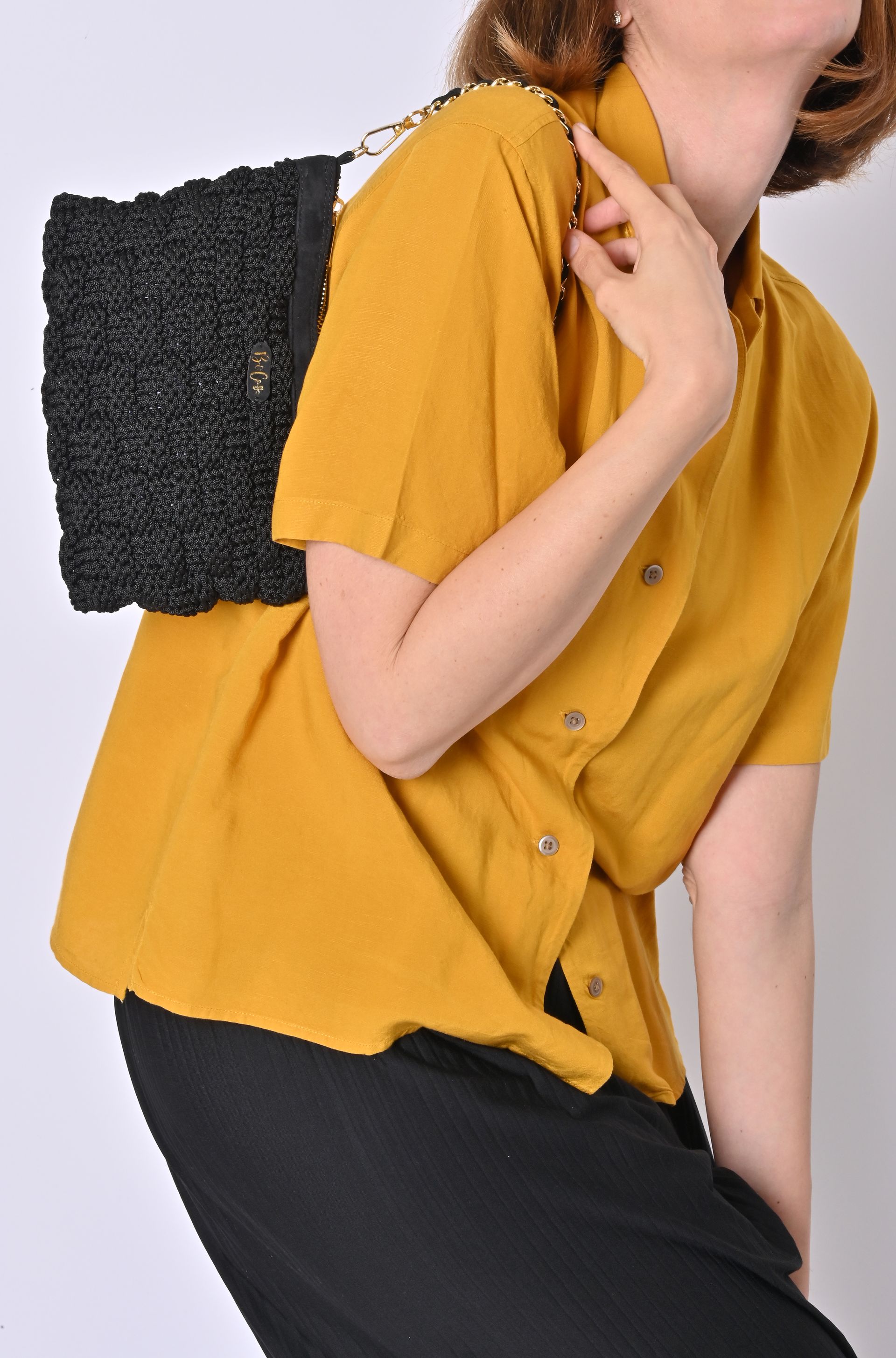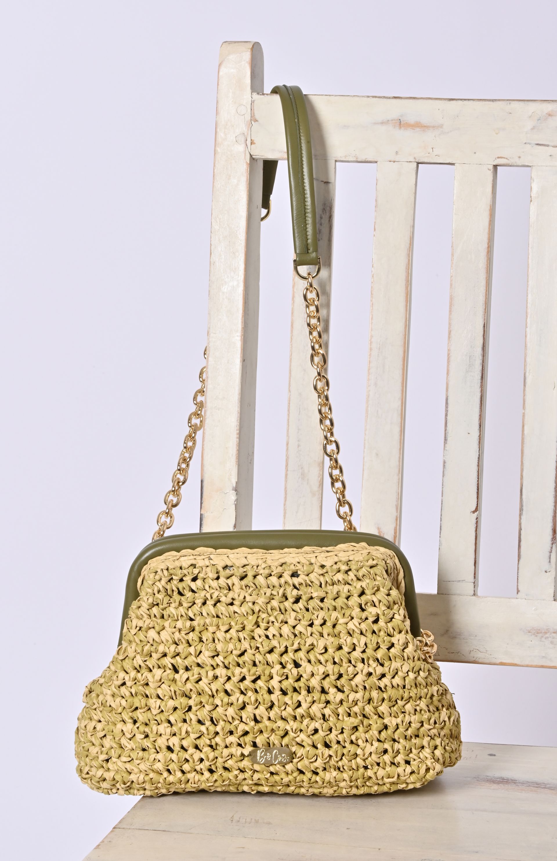 Composizione: Rafia e inserti in pelle, interno in raso di seta - fantasia