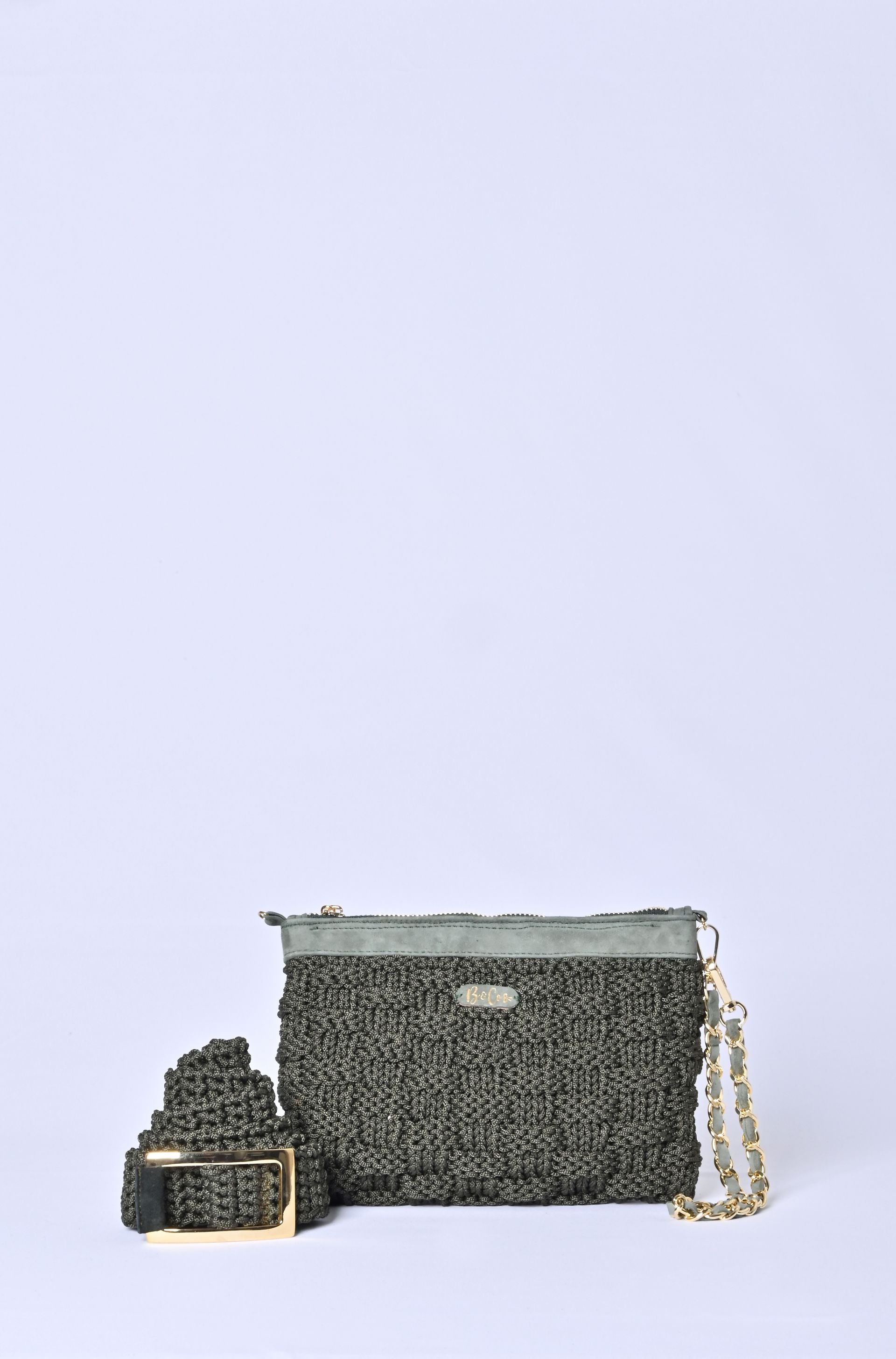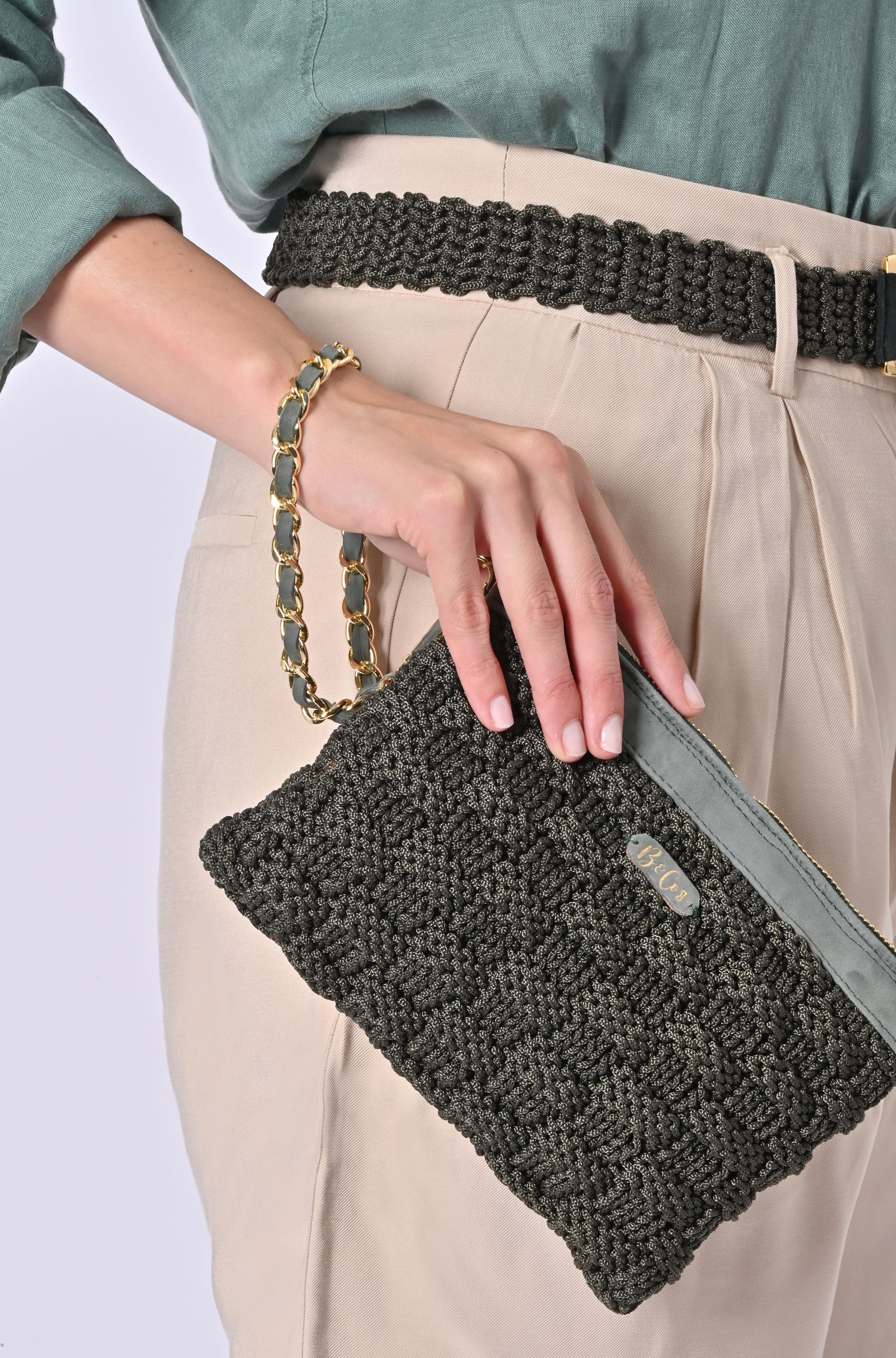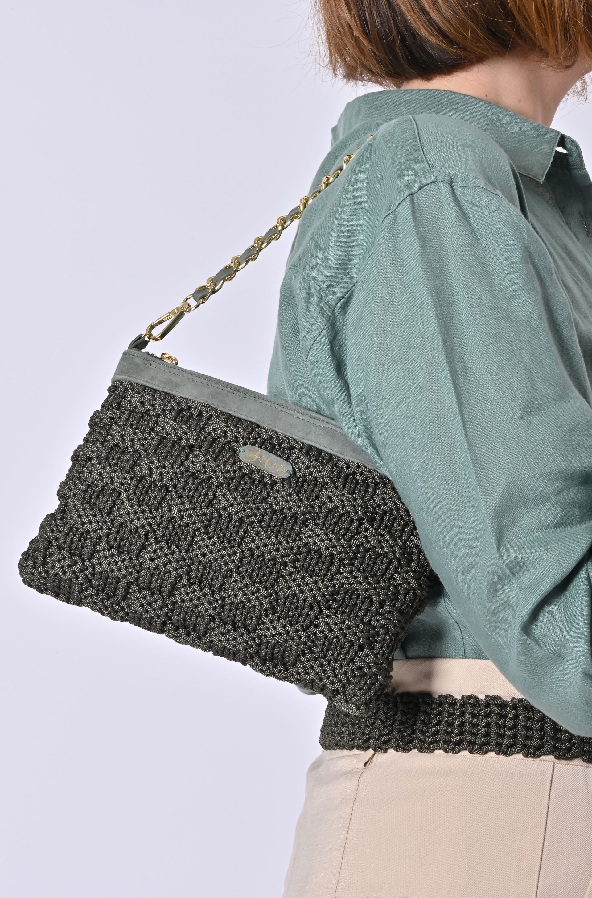 Composizione: Iuta e dettaglio in camoscio, fibbia color oro