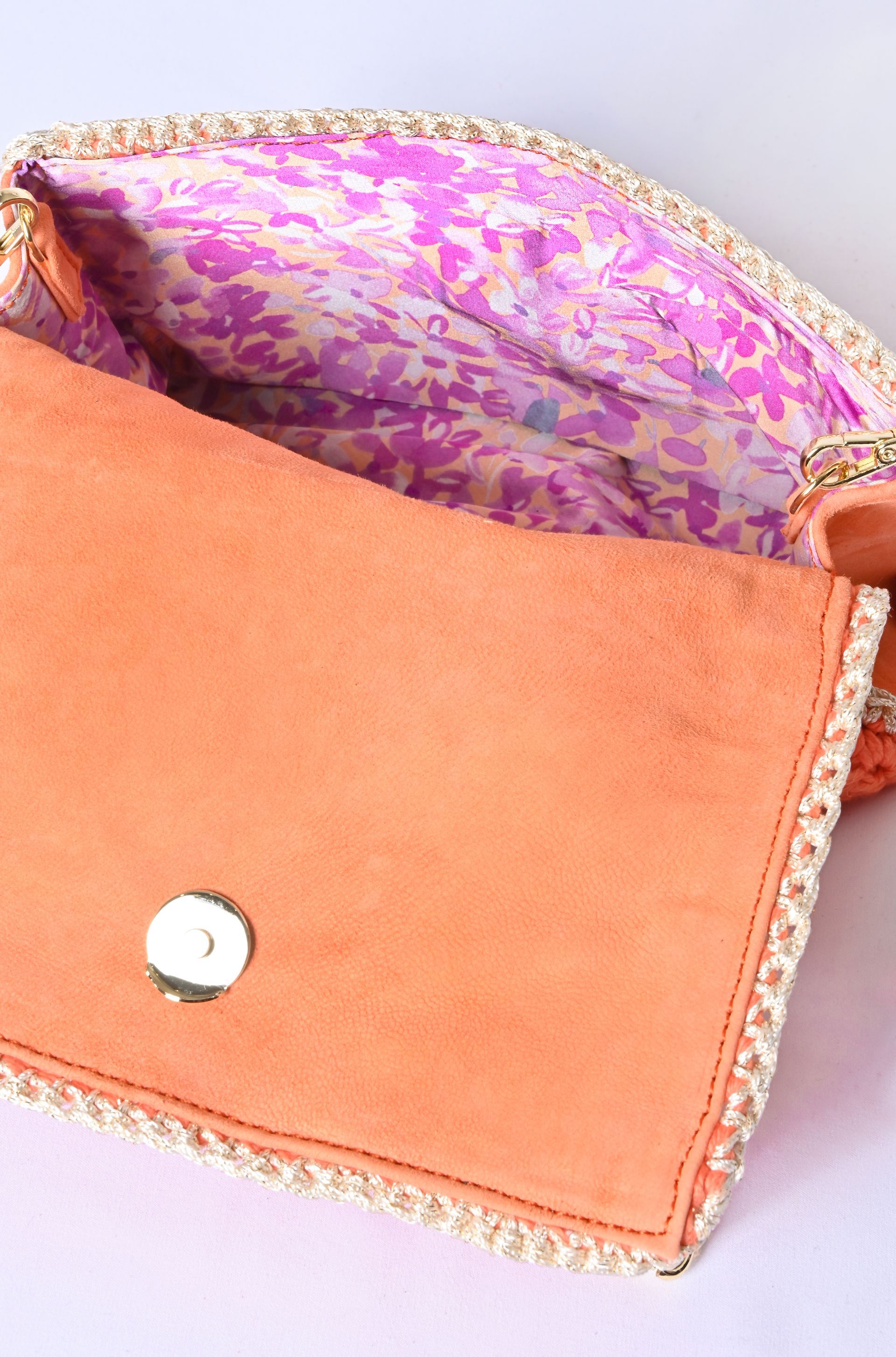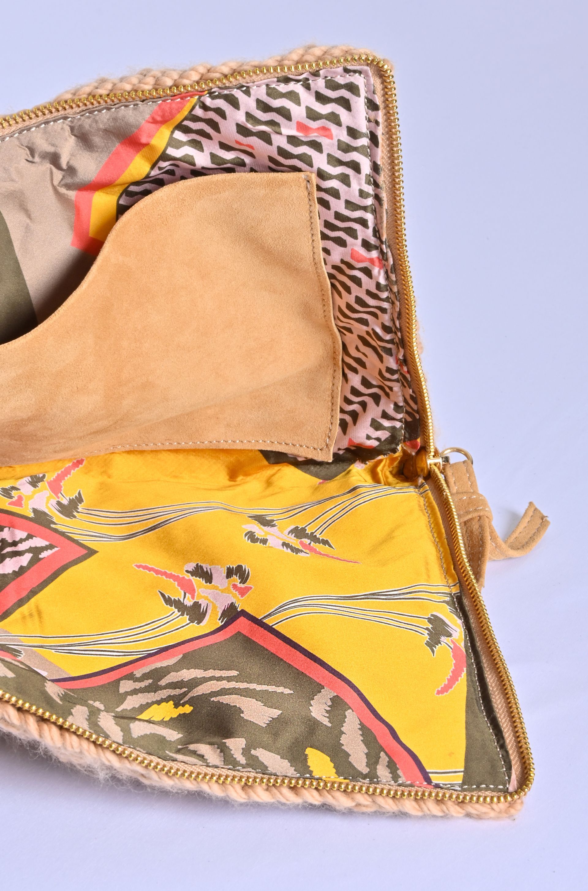Composizione: Rafia e inserti in camoscio, interno in raso di seta - fantasia