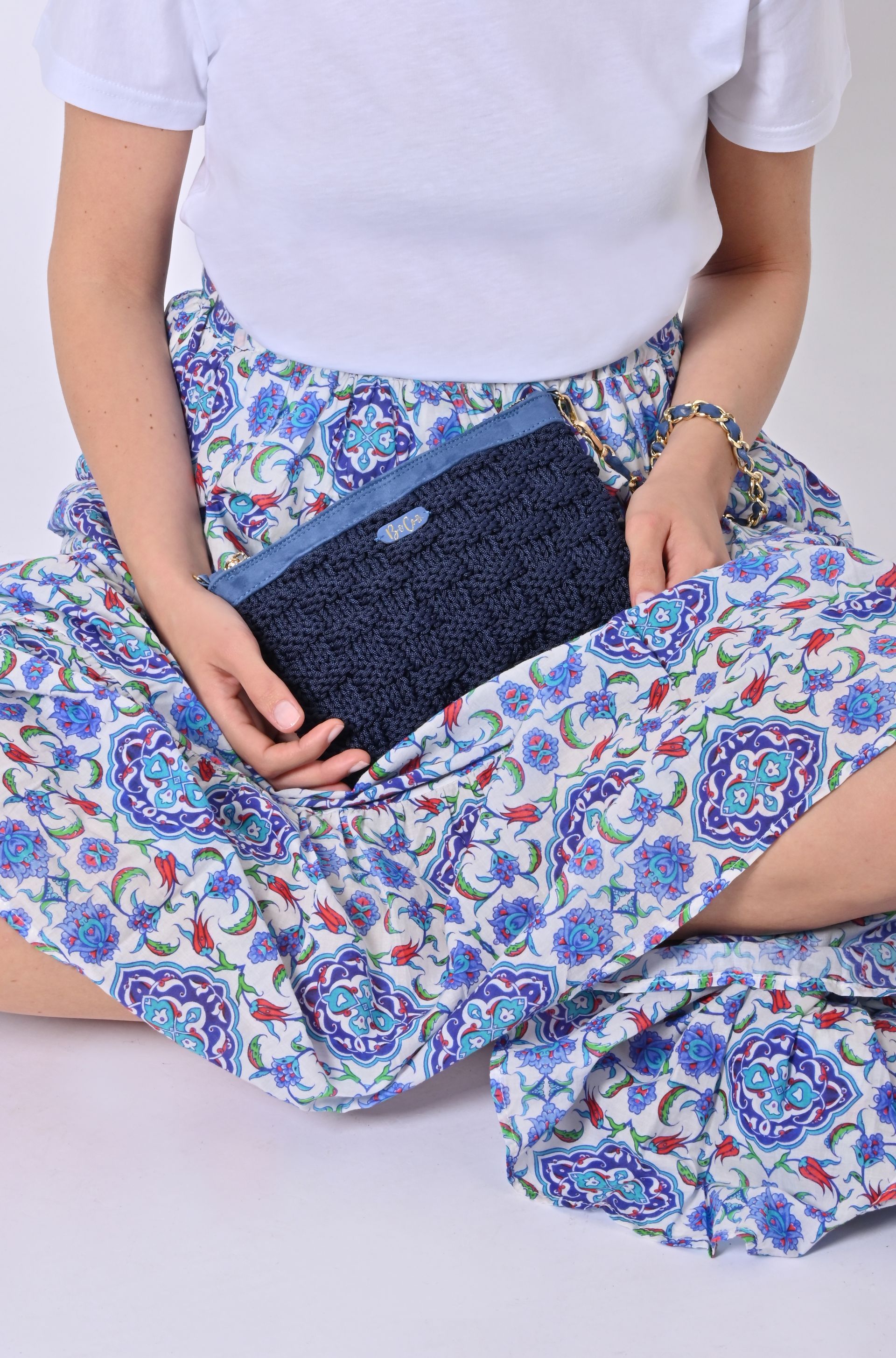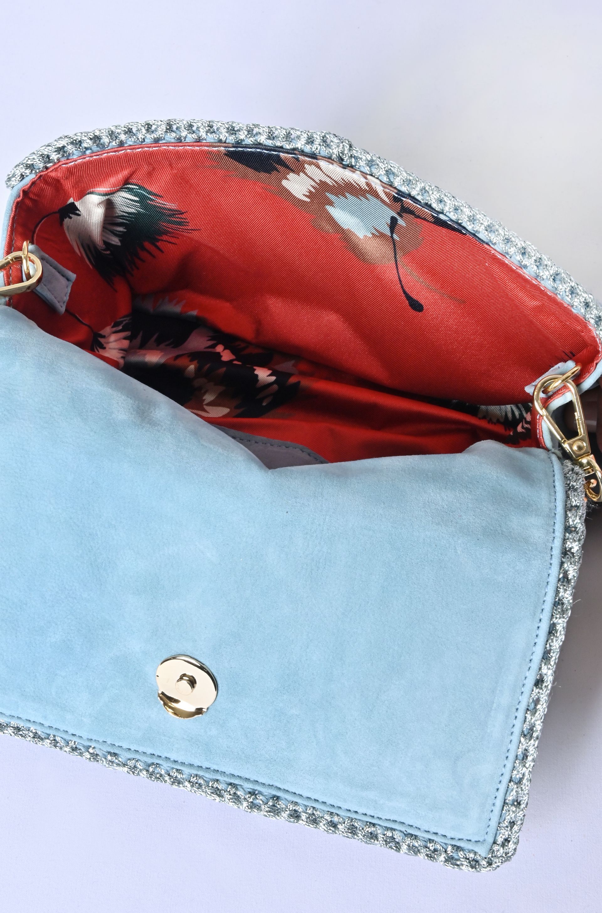Composizione: Filo di cotone e inserti in camoscio, interno in raso di seta - fantasia