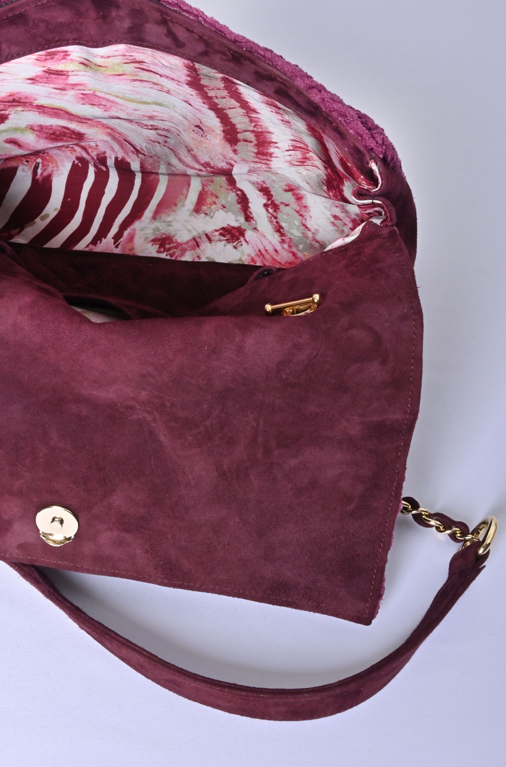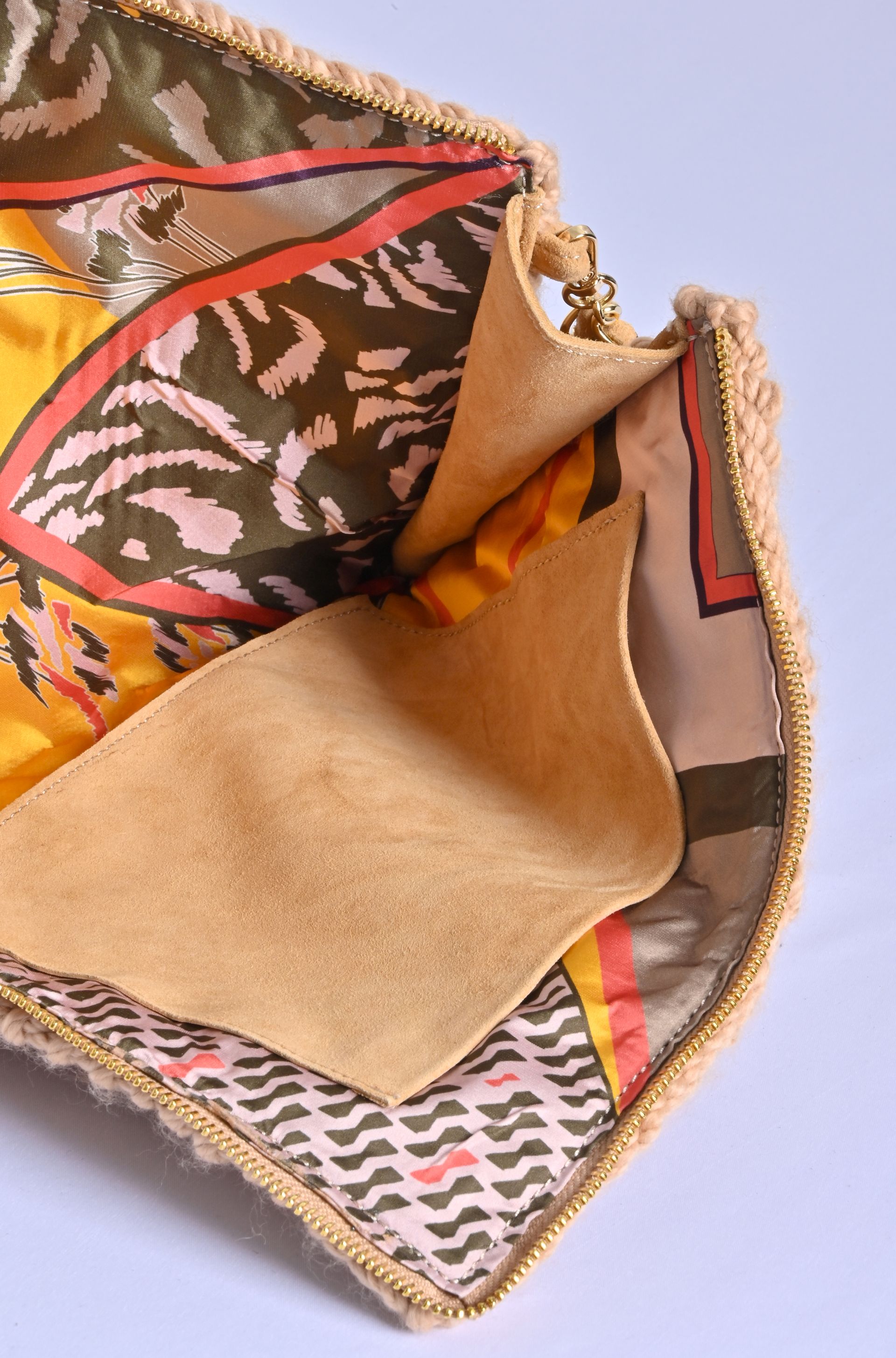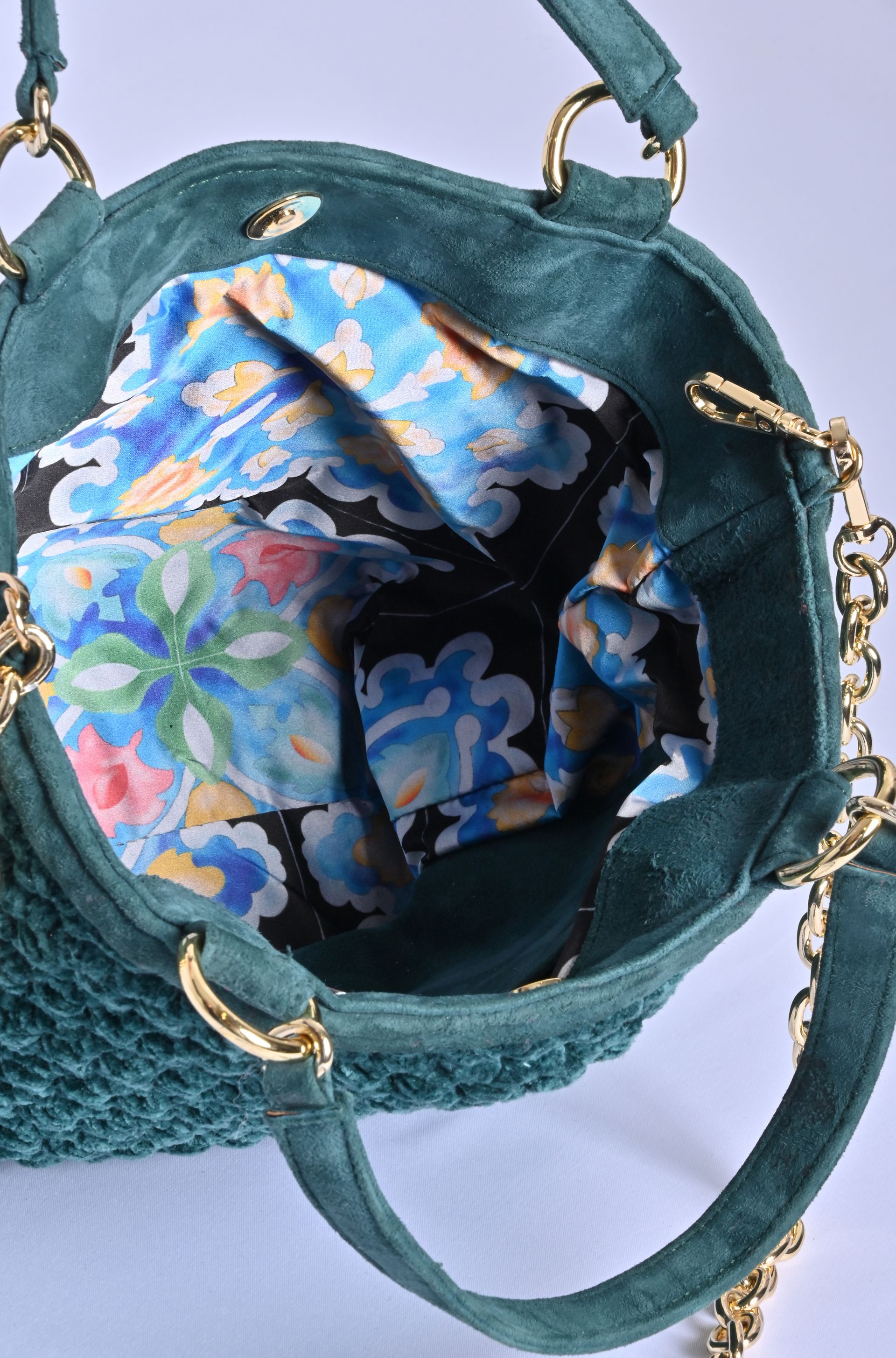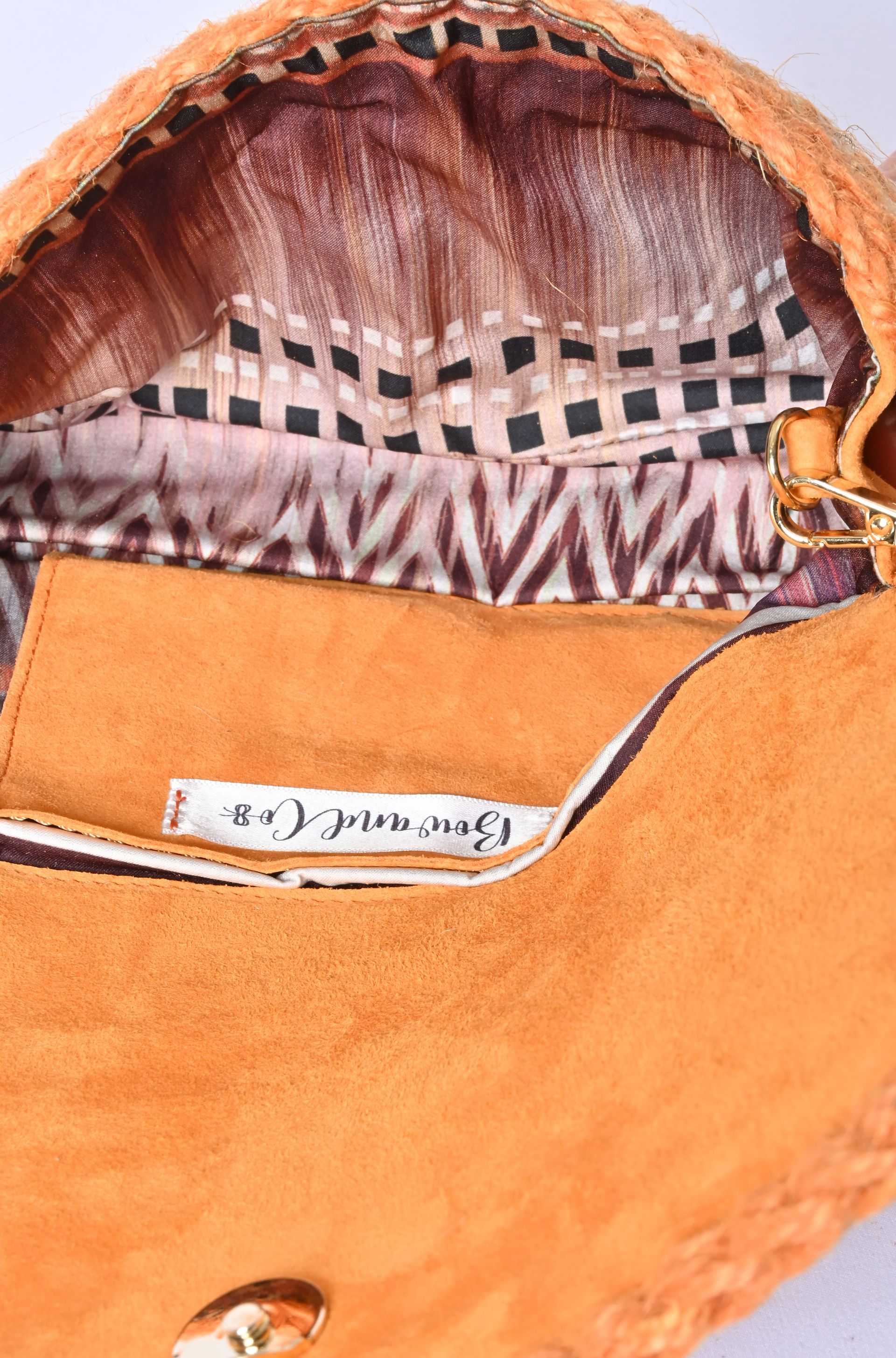Composizione: Iuta e inserti in camoscio, interno in raso di seta - fantasia