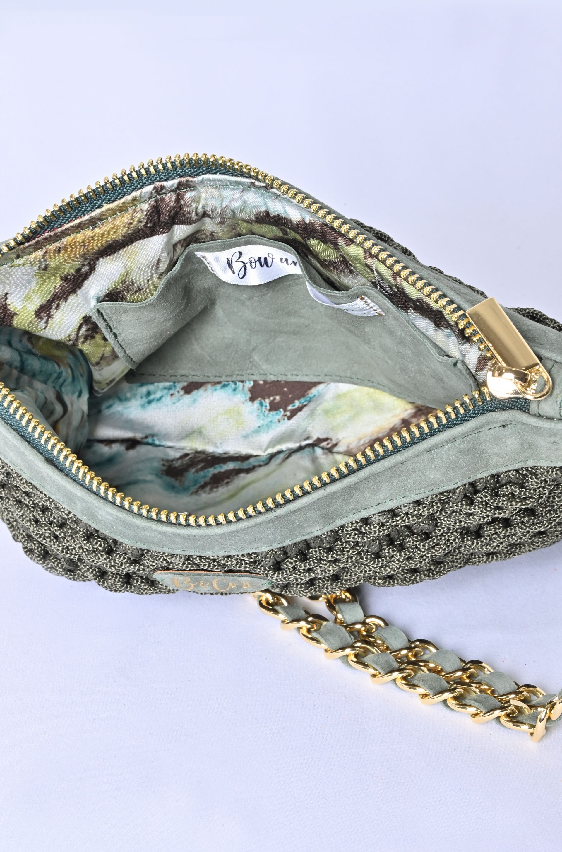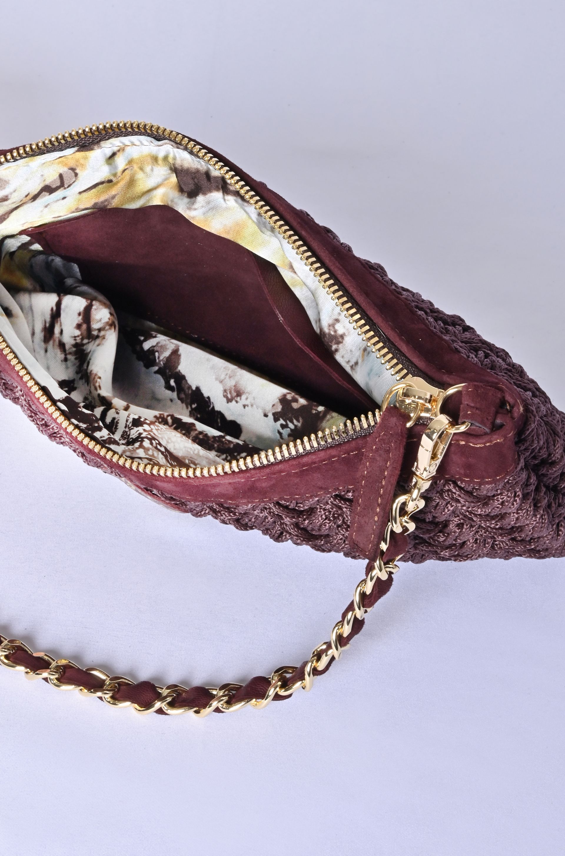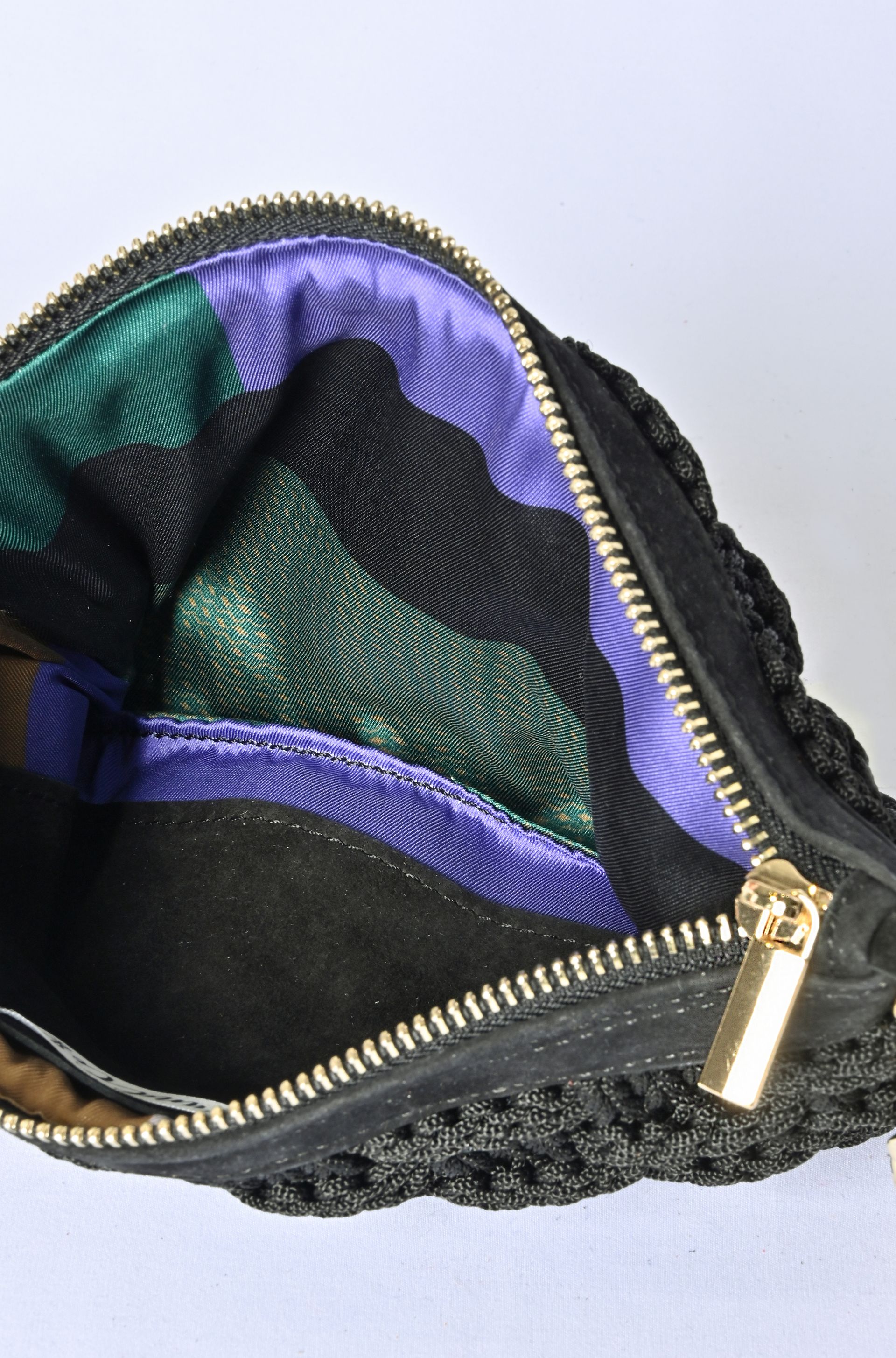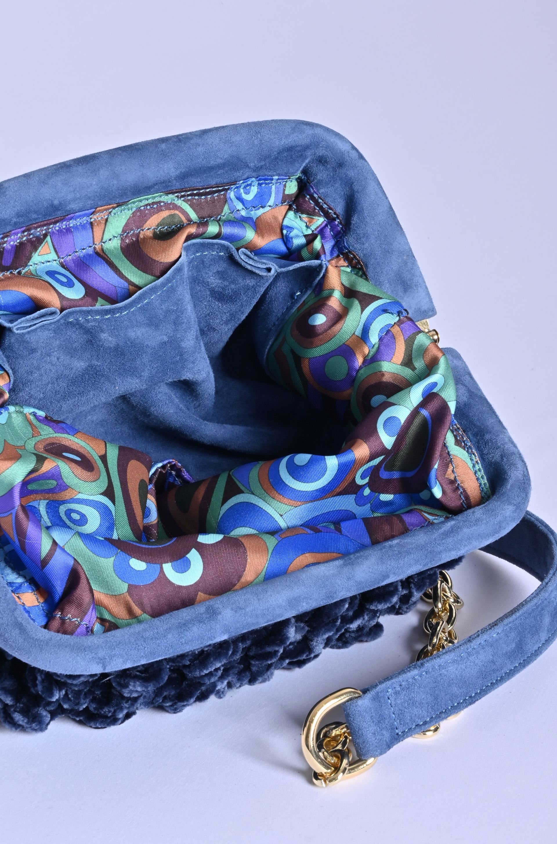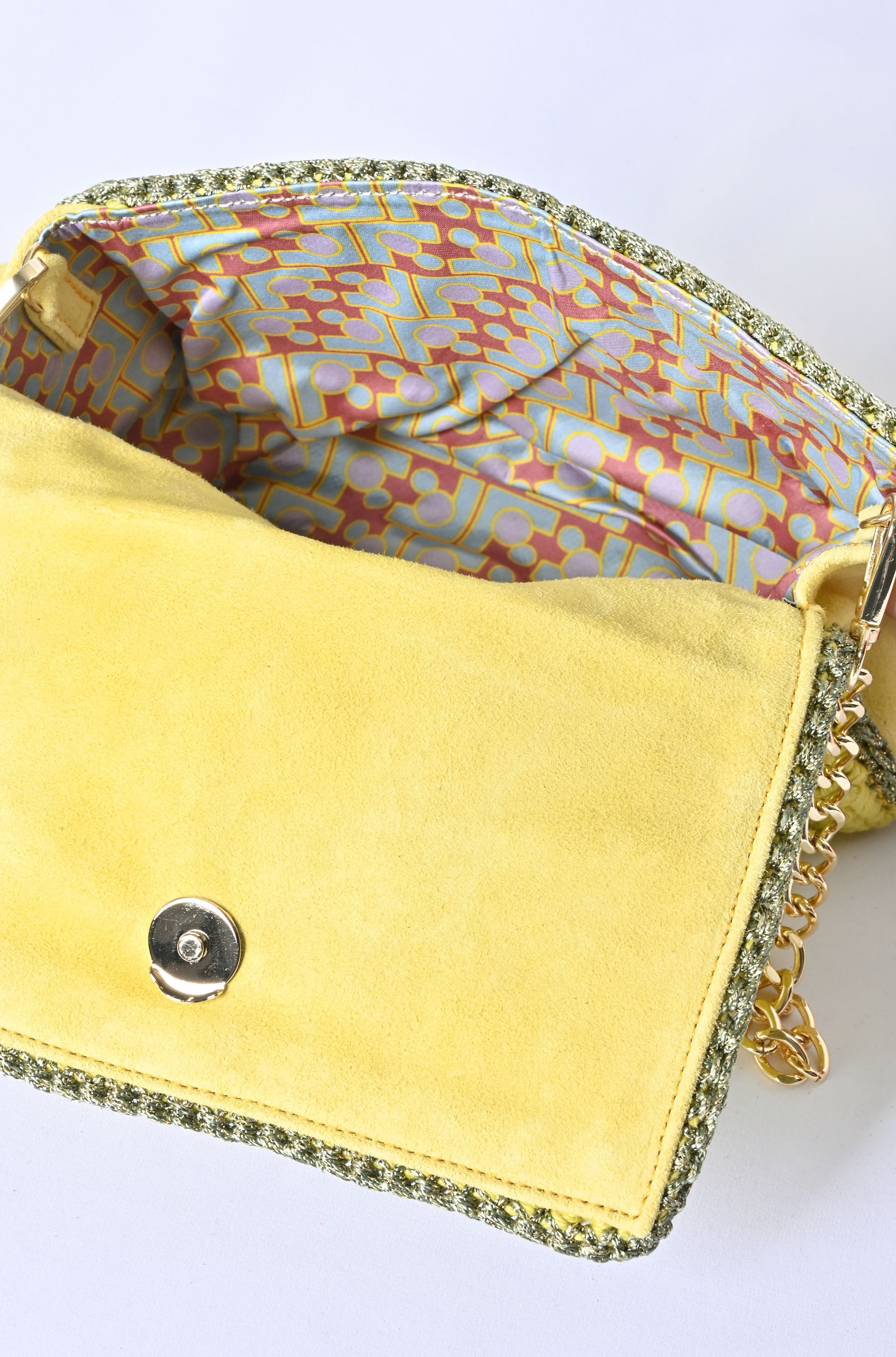 Composizione: Iuta e inserti in camoscio, interno in raso di seta - fantasia