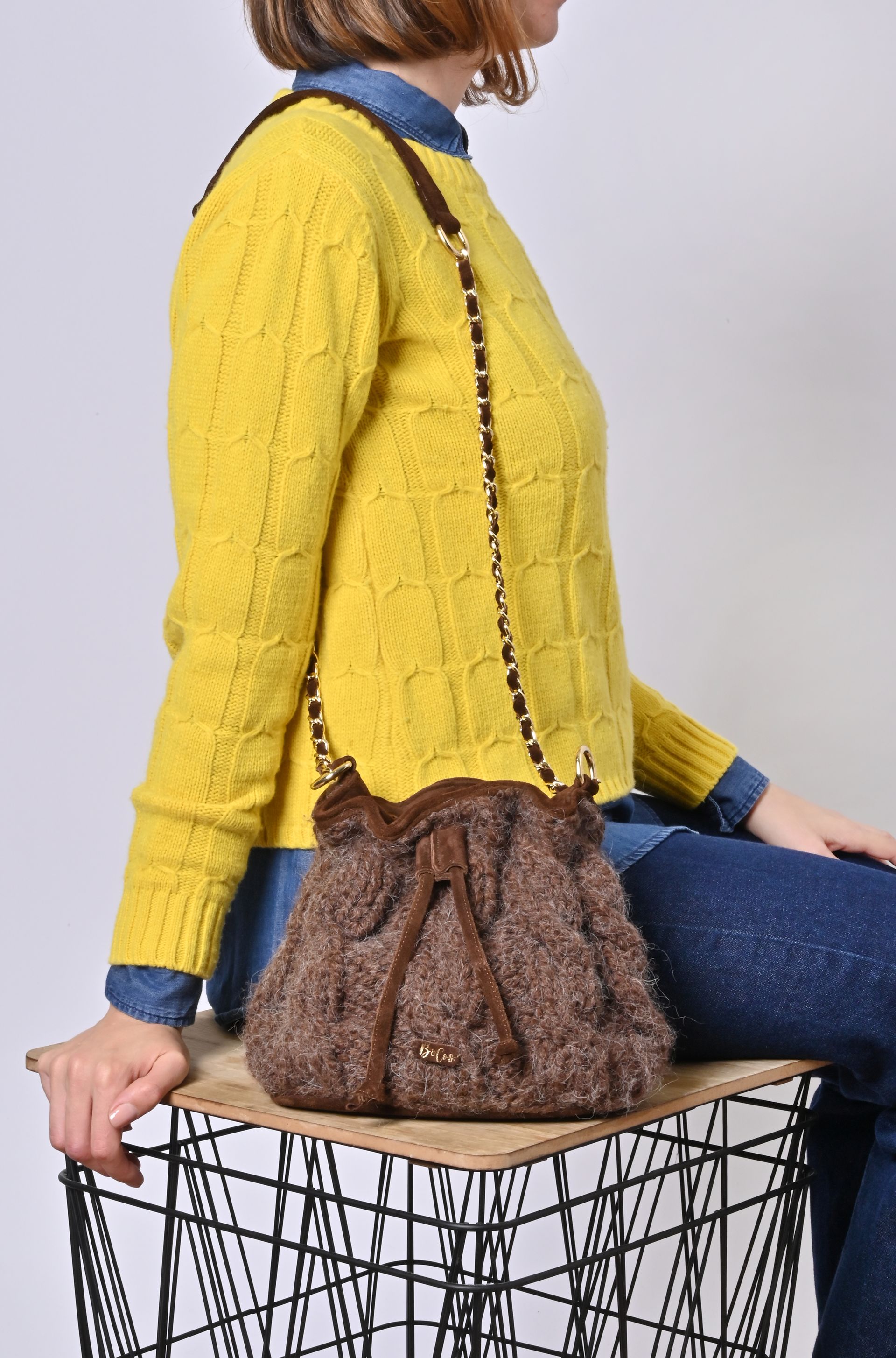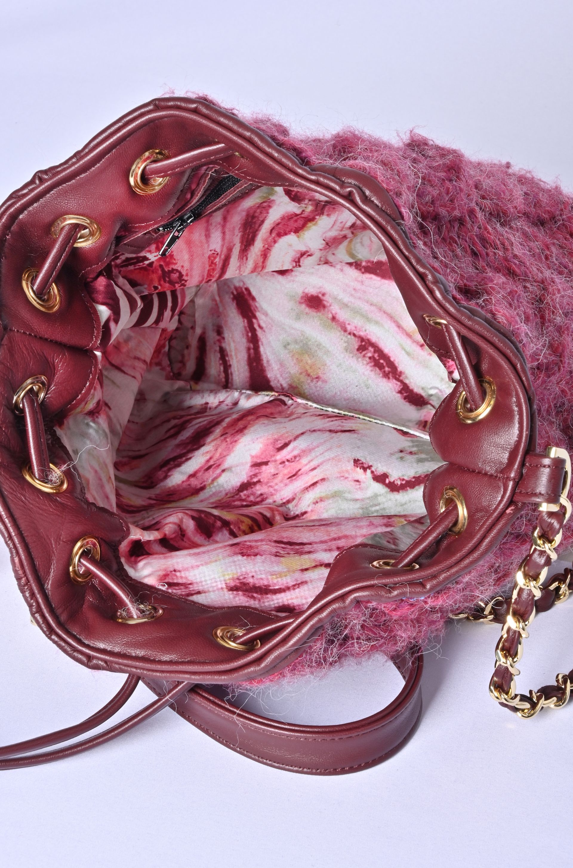 Composizione: Lana Mohair e inserti in camoscio, interno in raso di seta - fantasia