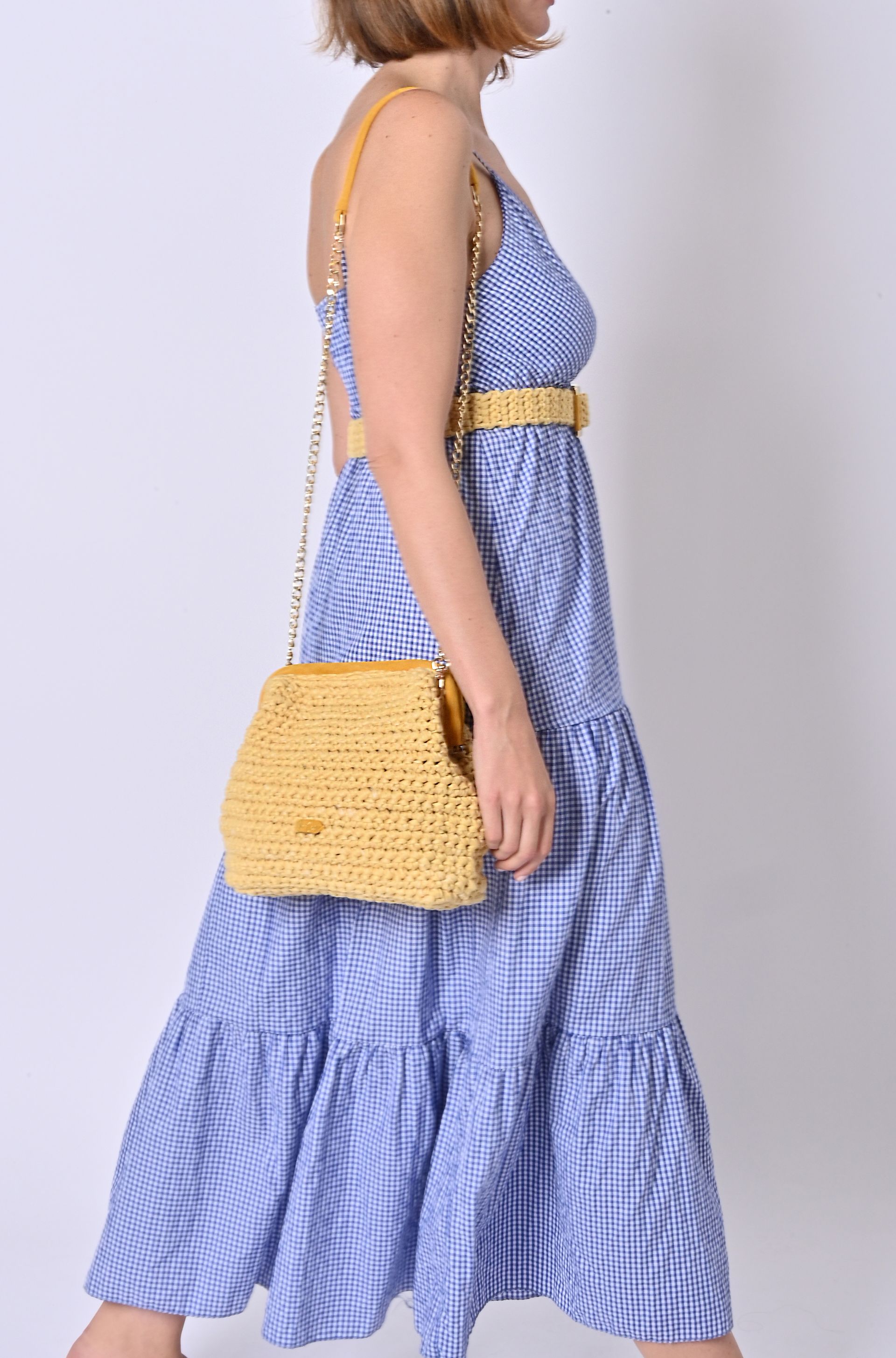 Composizione: Rafia e dettaglio in camoscio, fibbia color oro